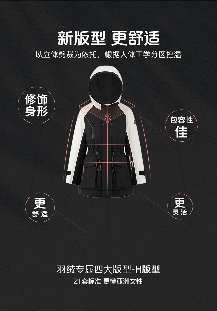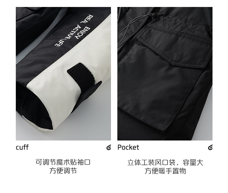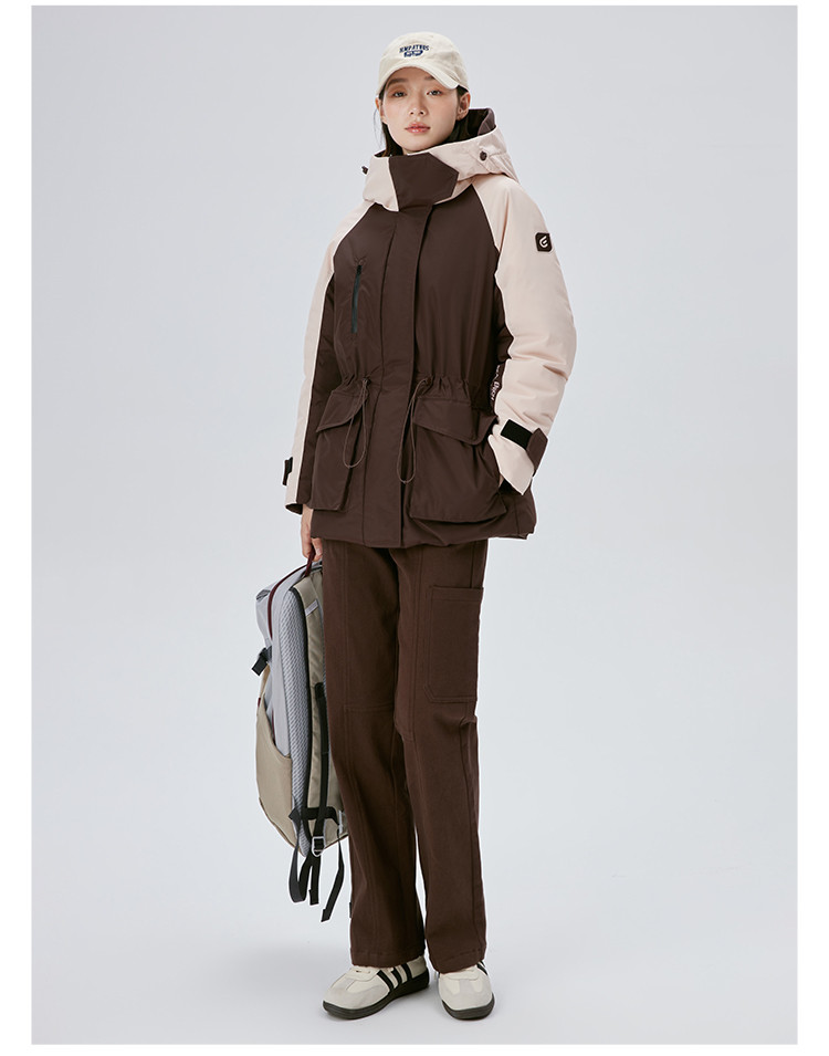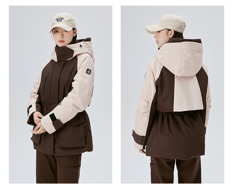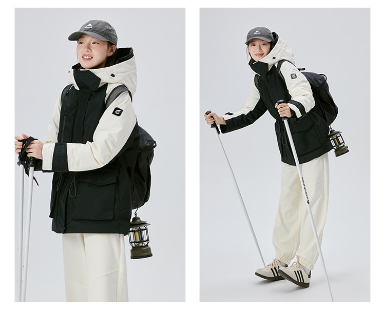 工装风户外羽绒服女冬季时尚撞色连帽宽松工装外套派克服 126294