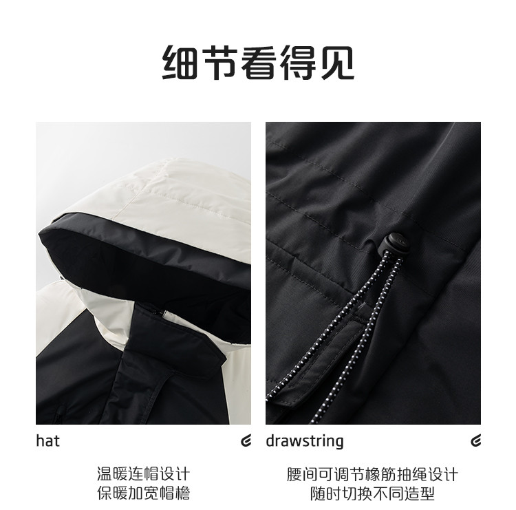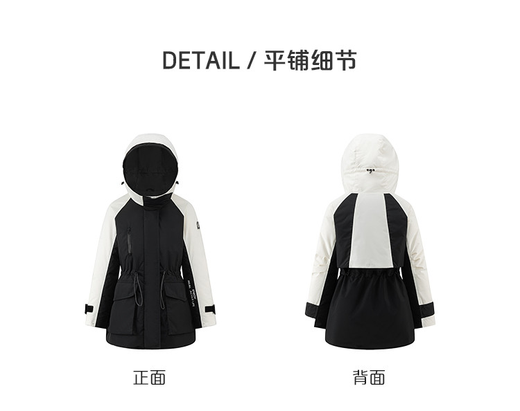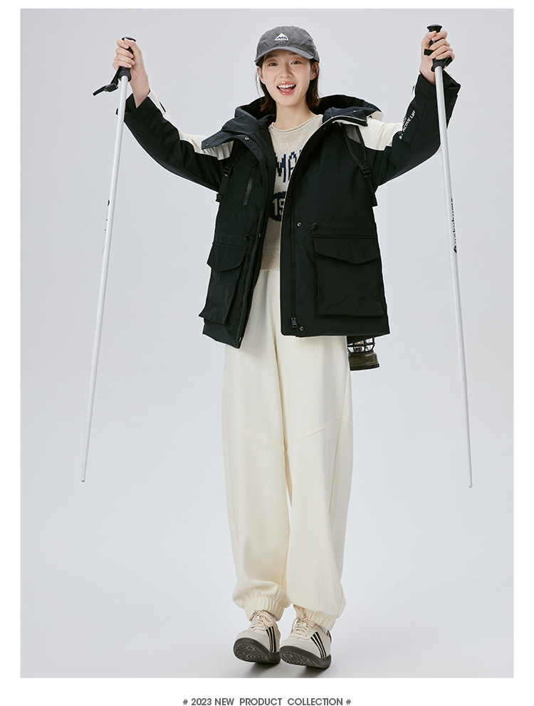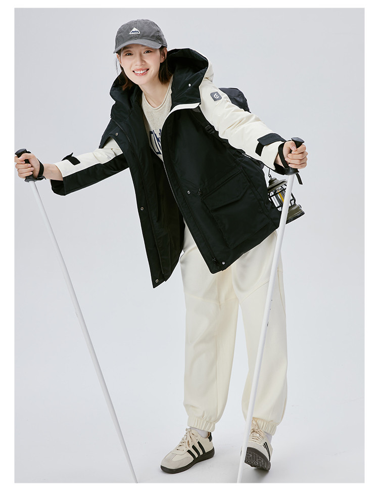 商品名称:工装风户外羽绒服女冬季时尚撞色连帽宽松工装外套派克服 126294