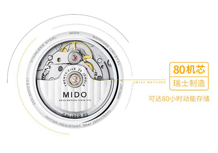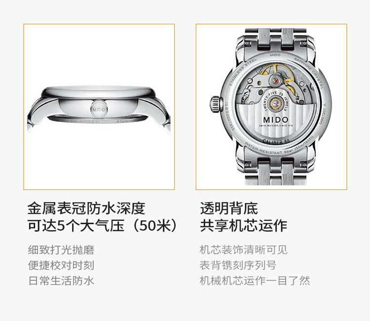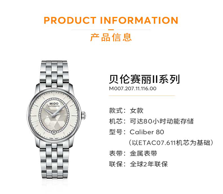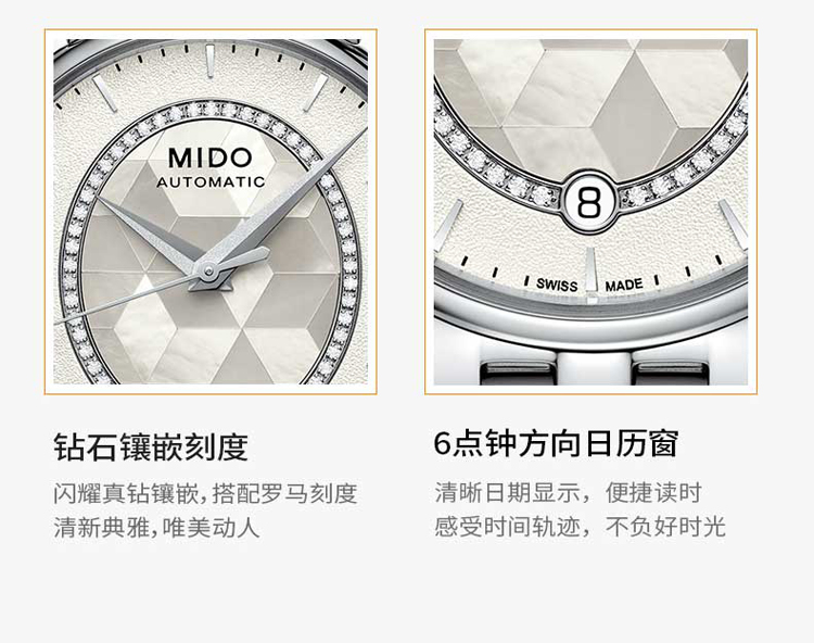 商品名称:MIDO美度 贝伦赛丽钻石钢带机械女表(不支持无理由退换货)