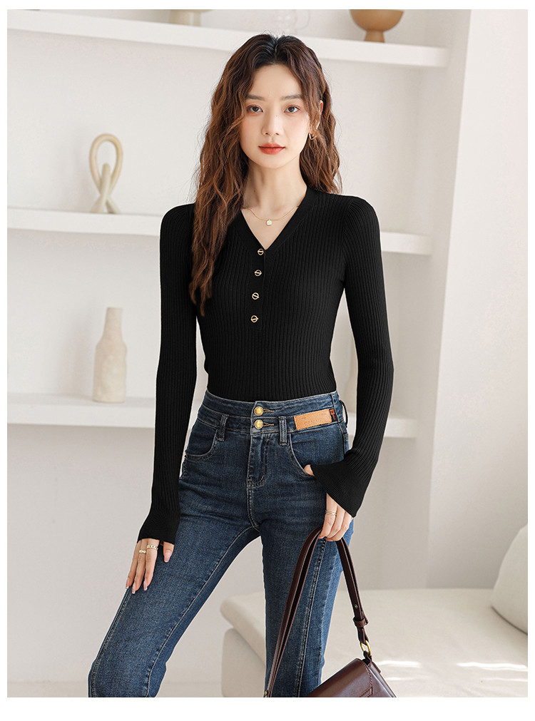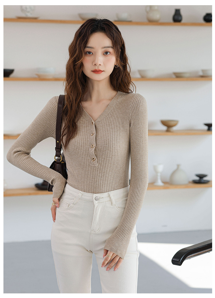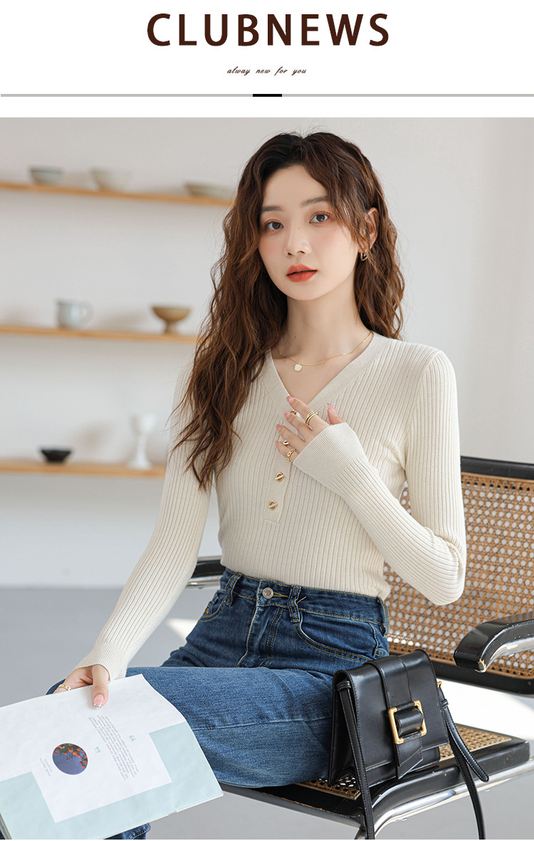 商品名称:V领法式优雅长袖针织衫内搭高级感针织衫上衣 330883