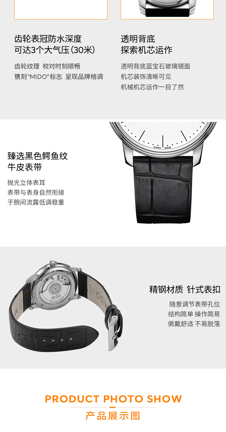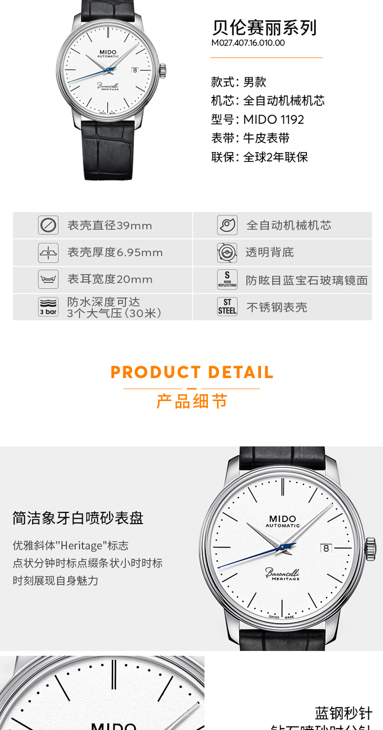 商品名称:MIDO美度 贝伦赛丽III系列典藏40周年超薄自动机械男表(不支持无理由退换货)