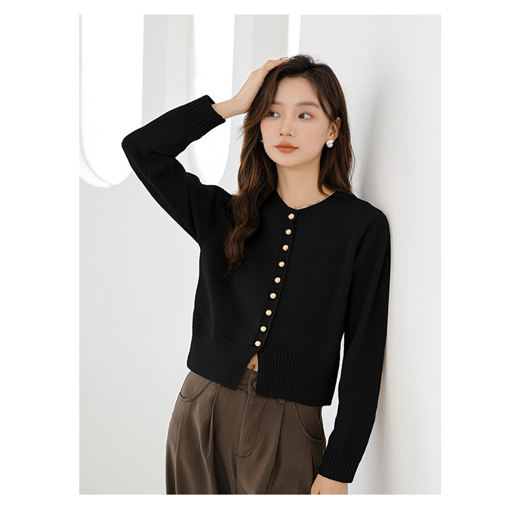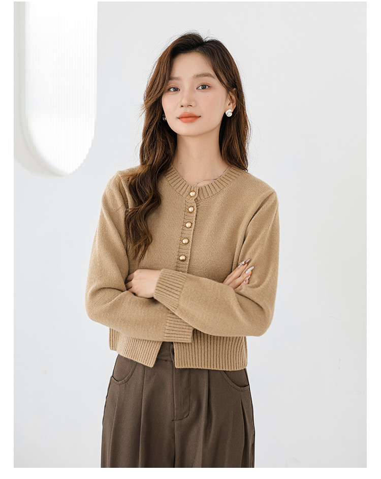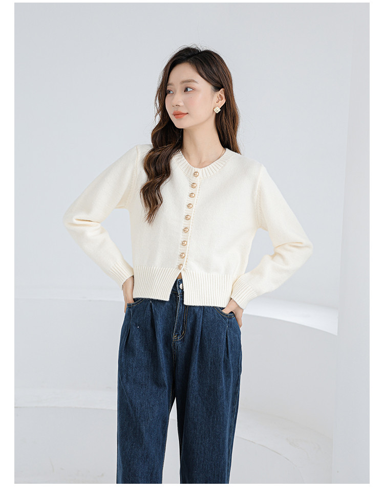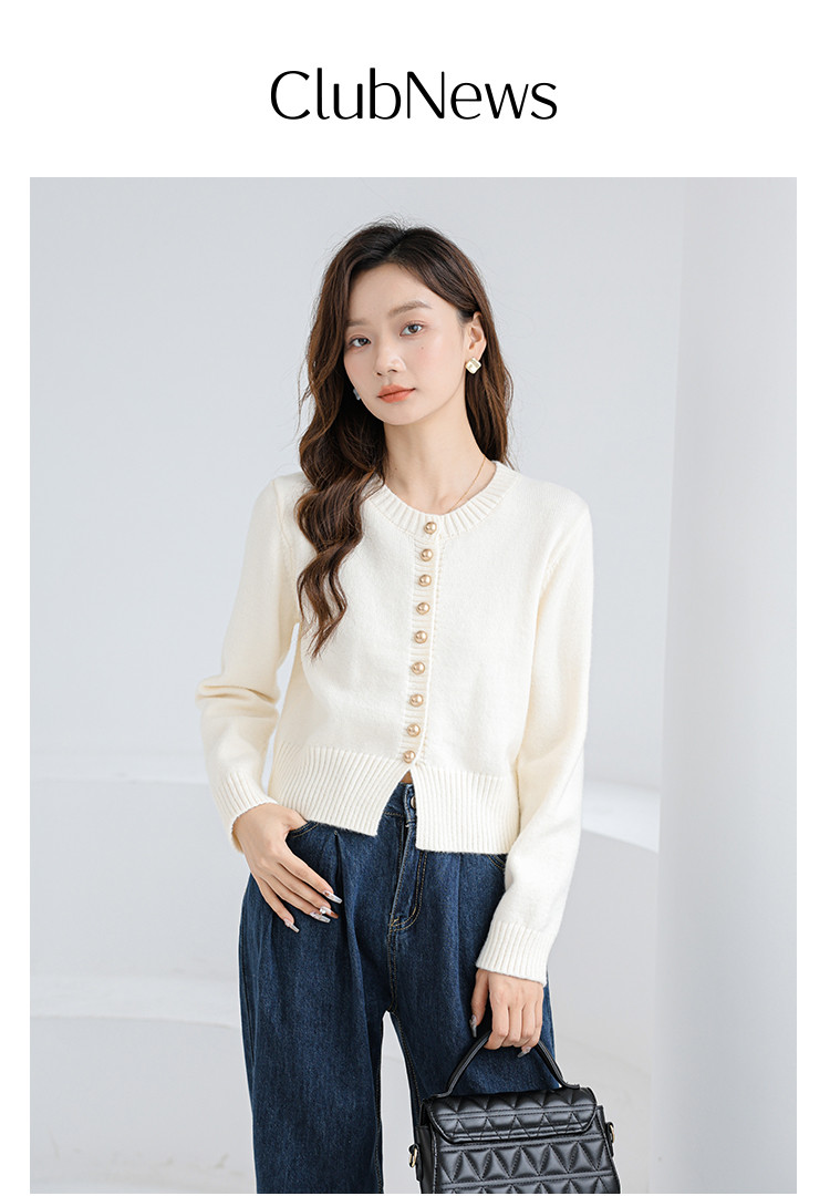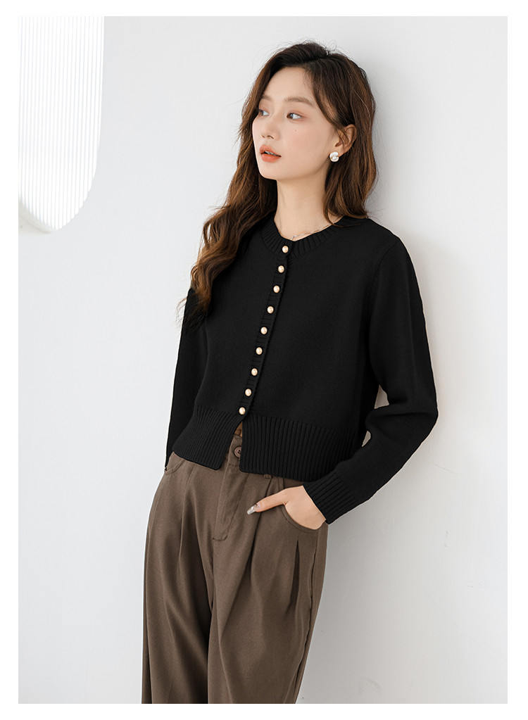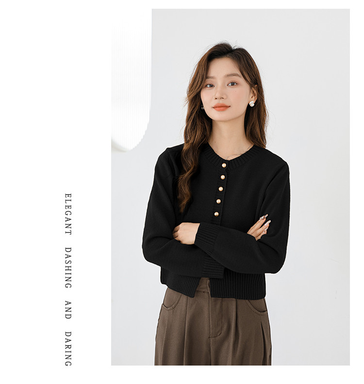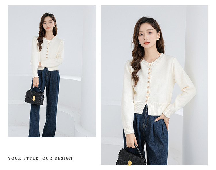 针织衫圆领针织开衫女法式小香风针织外套 079875
