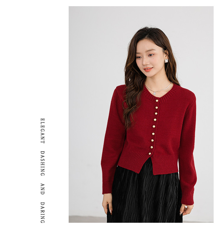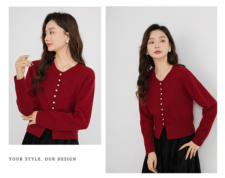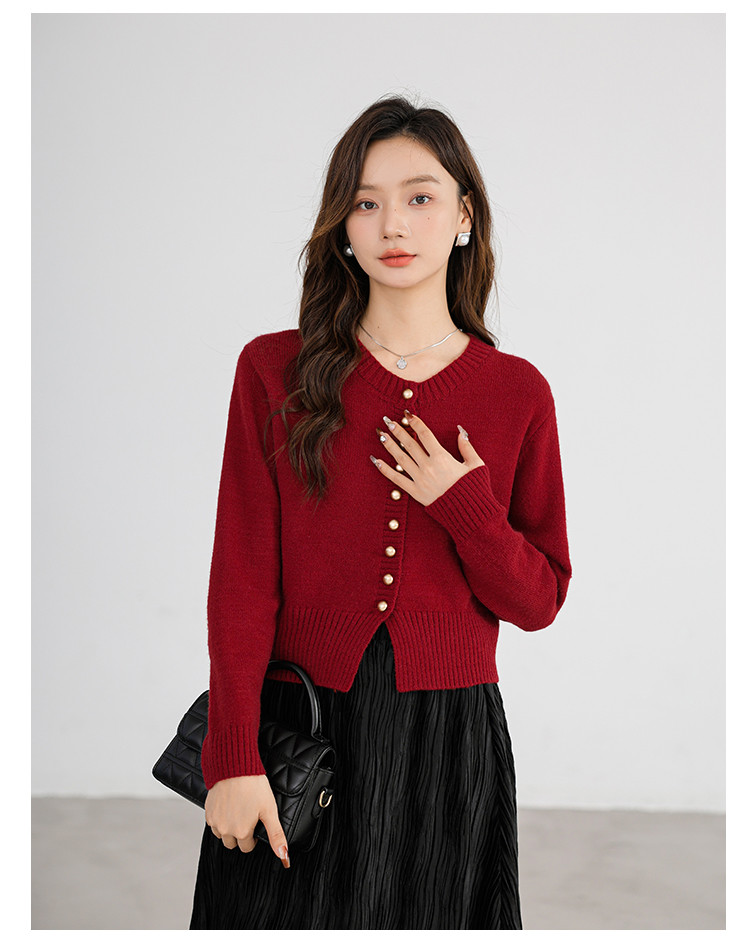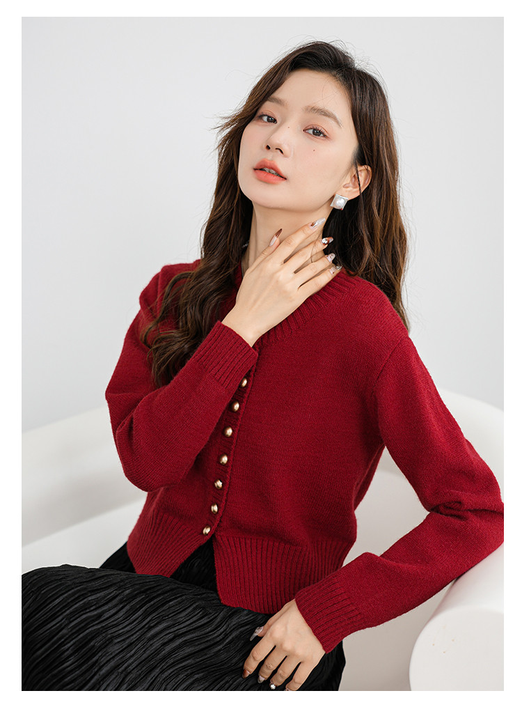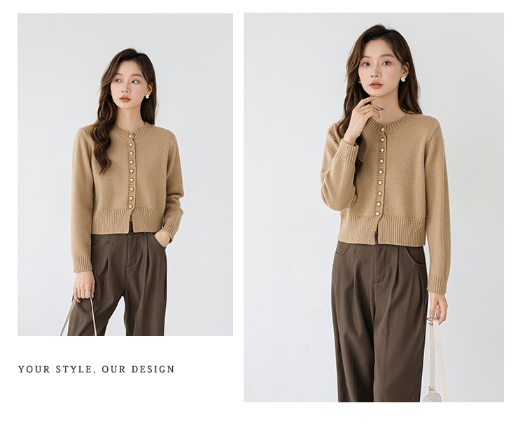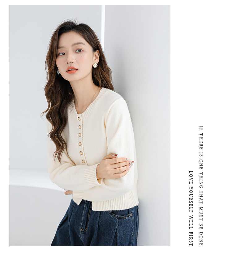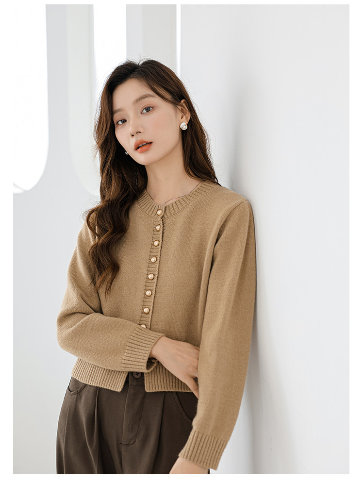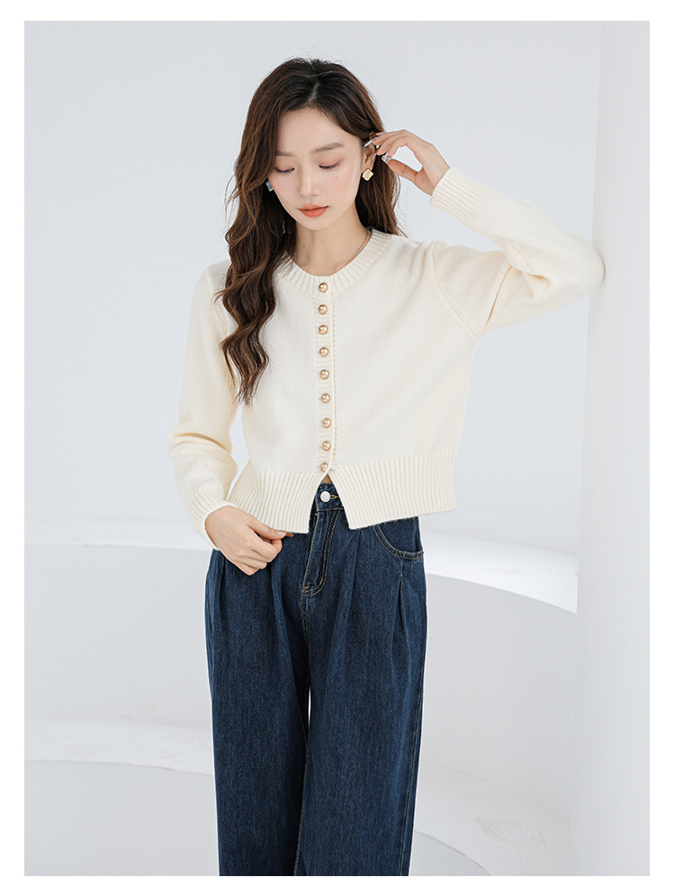 针织衫圆领针织开衫女法式小香风针织外套 079875