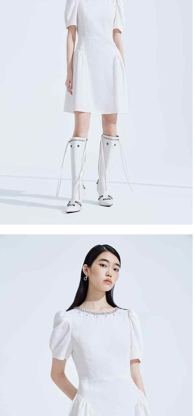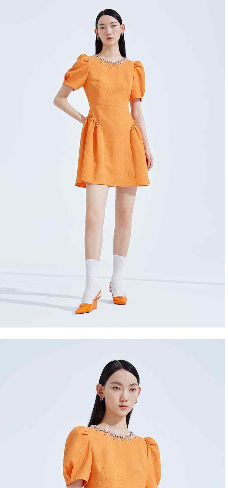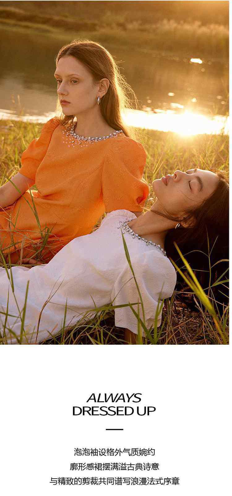 商品名称:黑标系列 夏装提花a字宫廷风泡泡袖连衣裙 582735