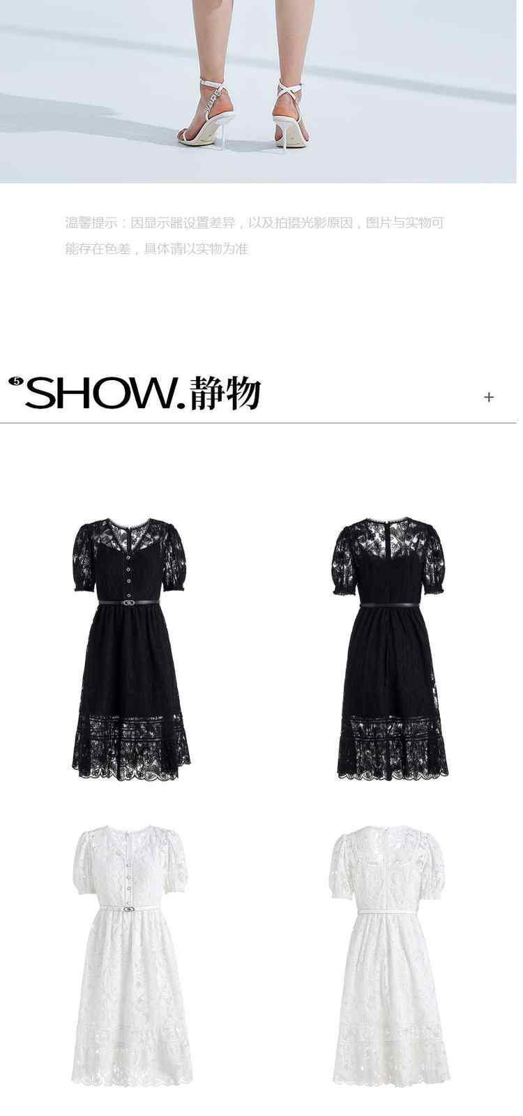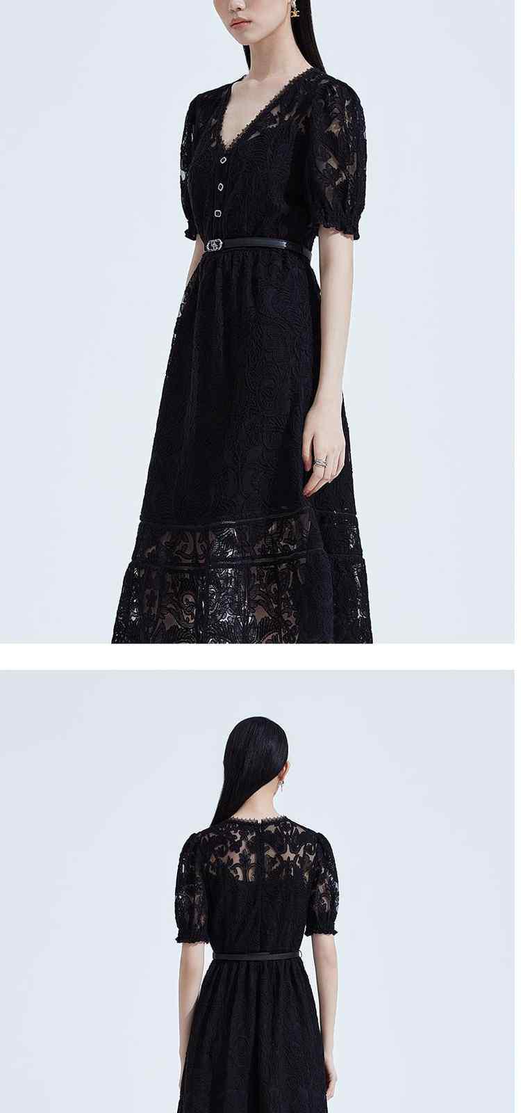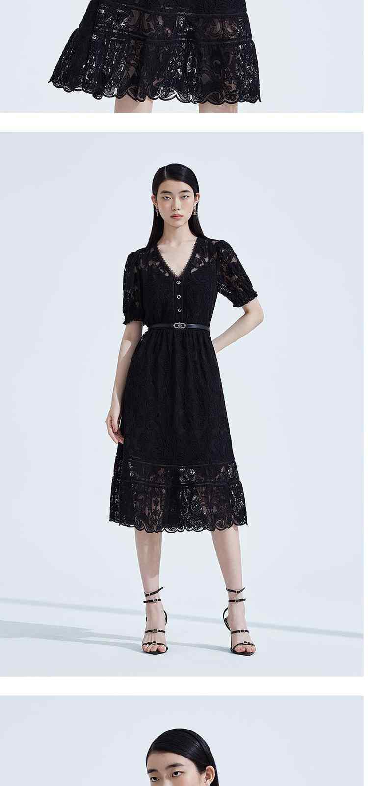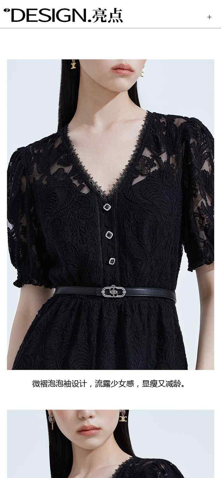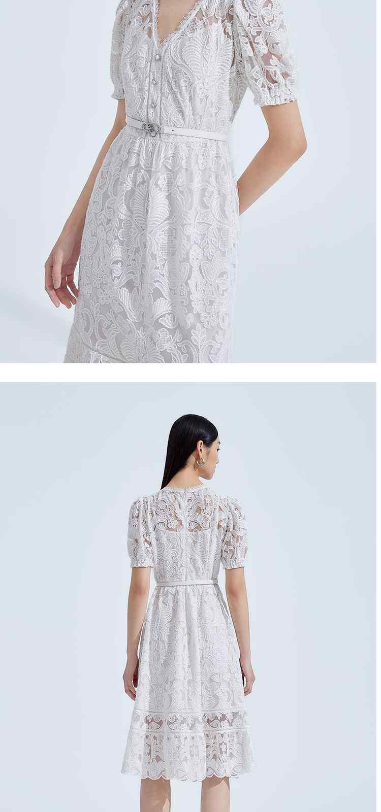 商品名称:夏装V领气质超仙水溶蕾丝温柔风连衣裙女 066191
