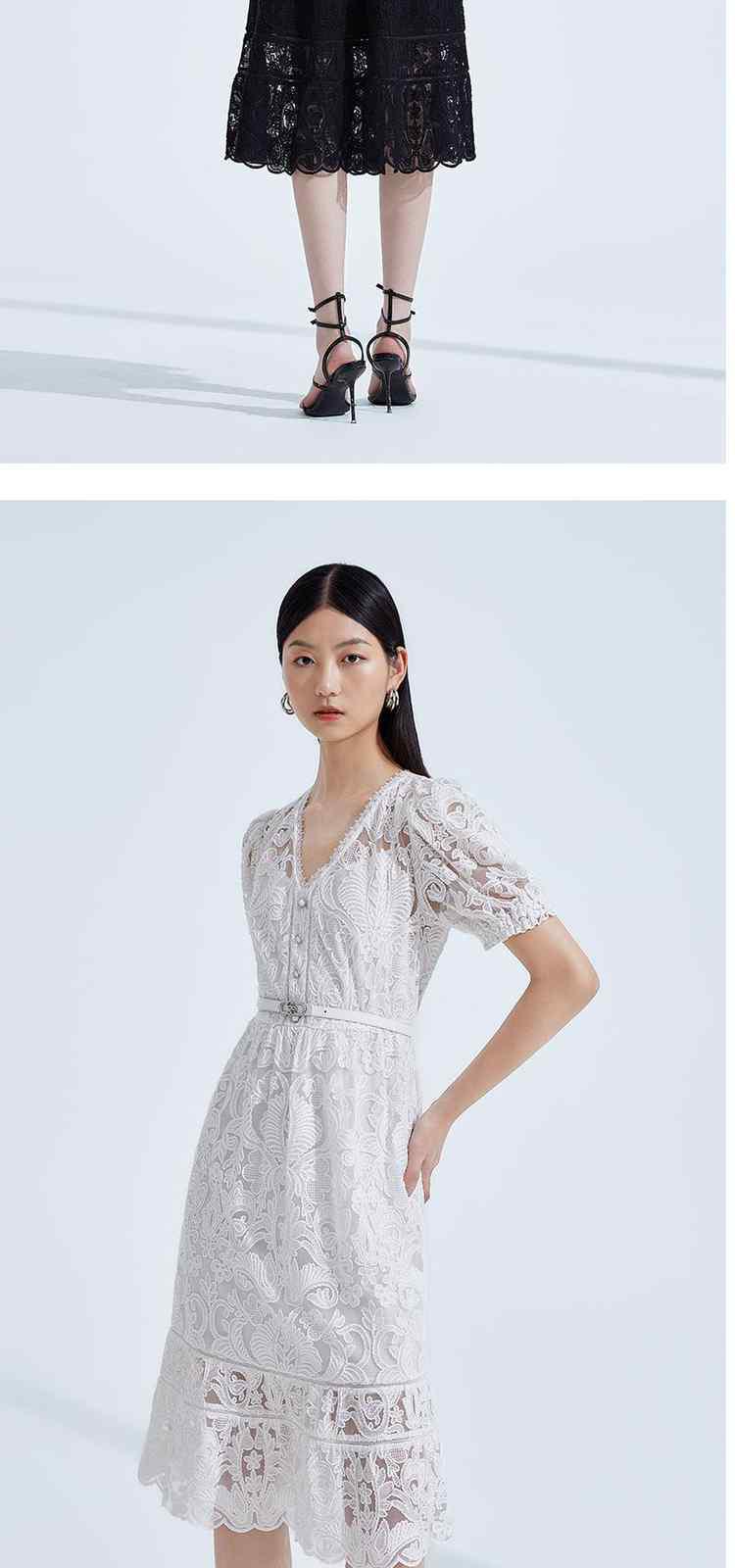 夏装V领气质超仙水溶蕾丝温柔风连衣裙女 066191