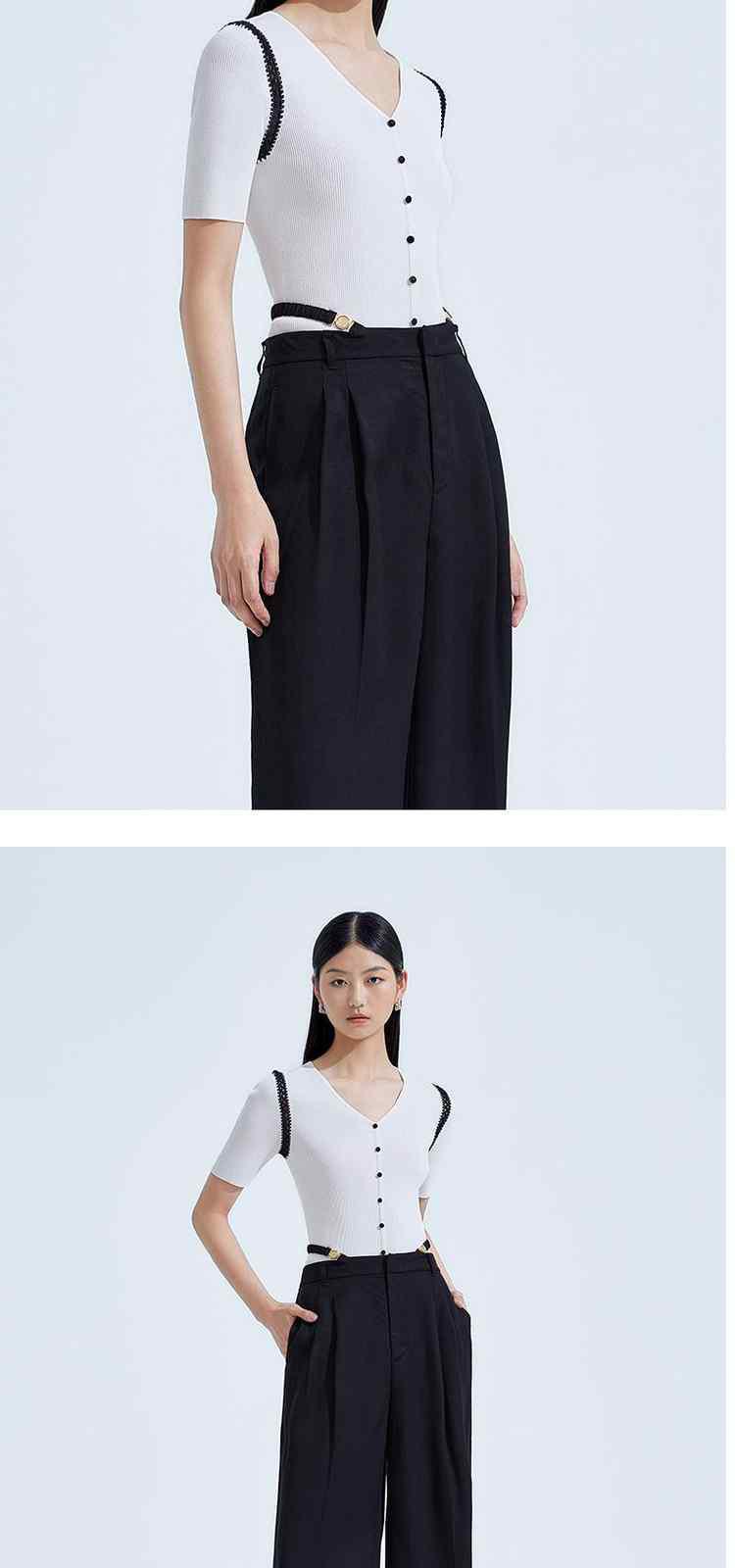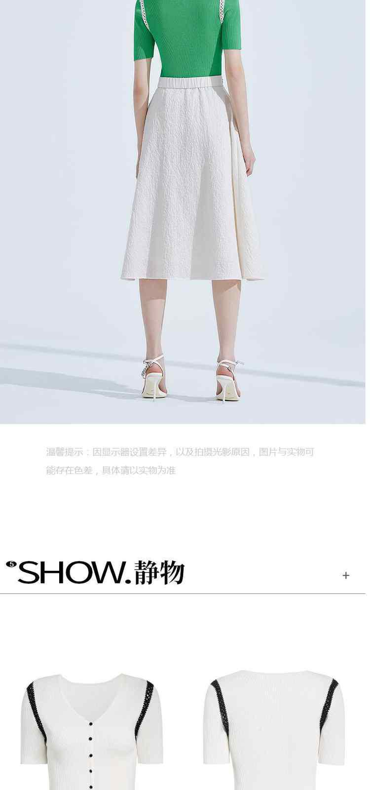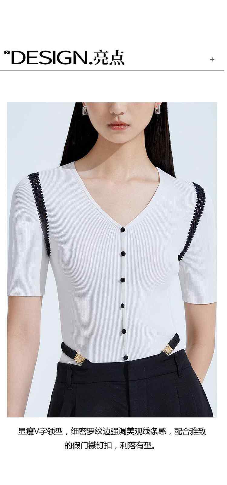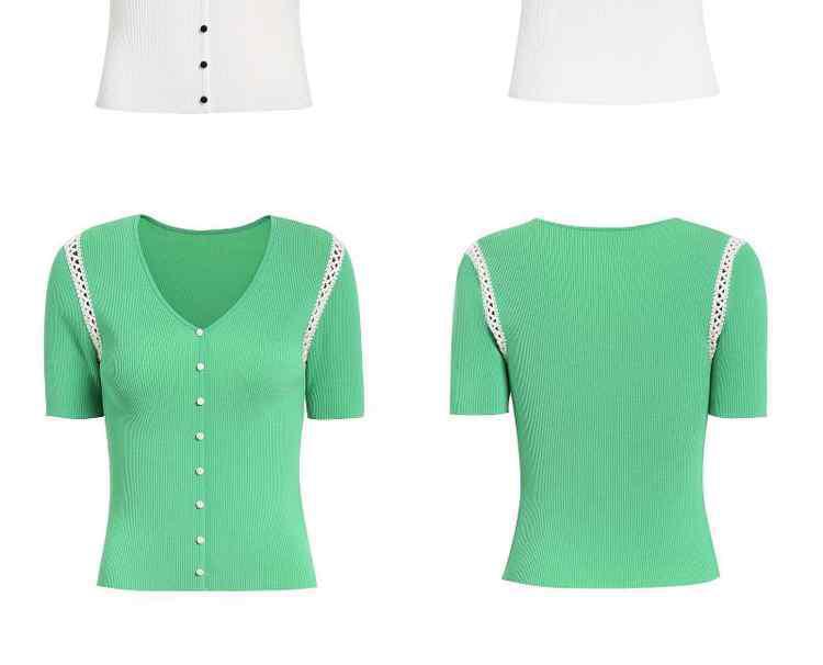 商品名称:夏装V领修身手勾花边薄款短袖针织衫女 582287