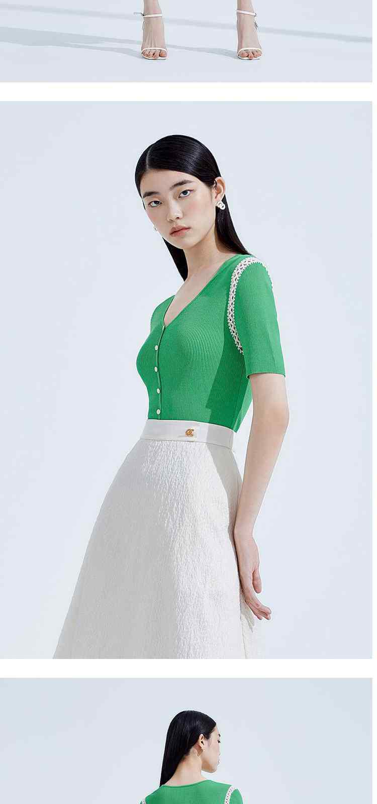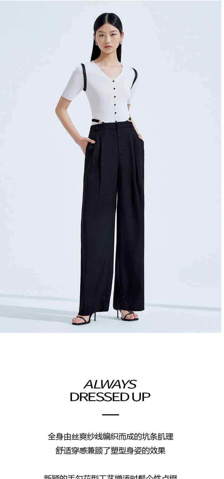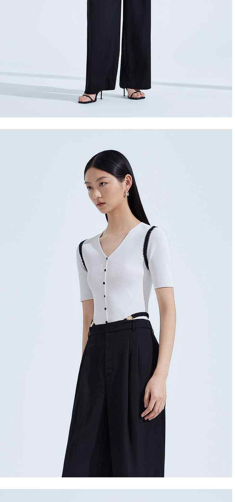 商品名称:夏装V领修身手勾花边薄款短袖针织衫女 582287