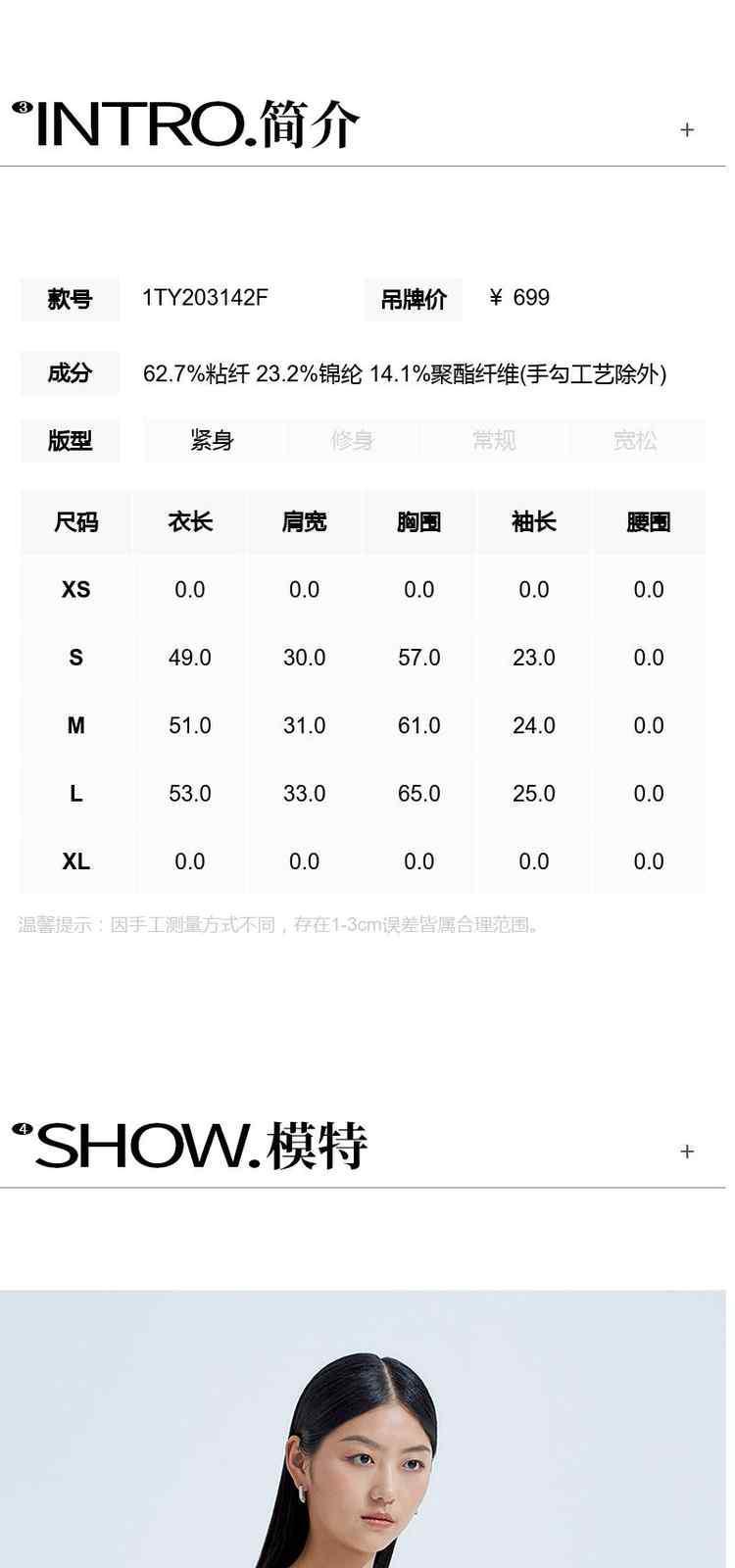 袖长(cm)