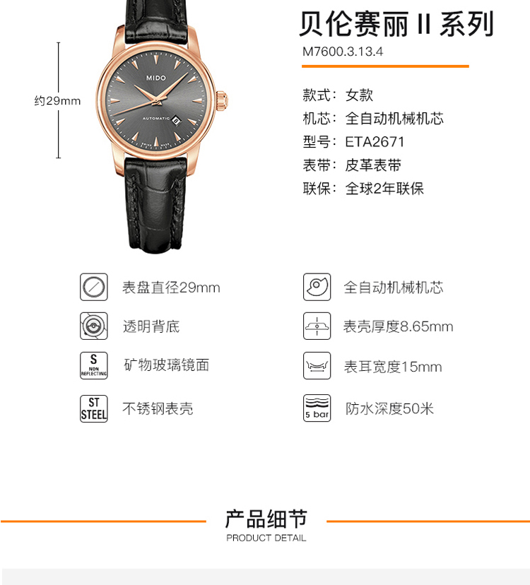 商品名称:MIDO美度 贝伦赛丽系列 自动机械女表(不支持无理由退换货)