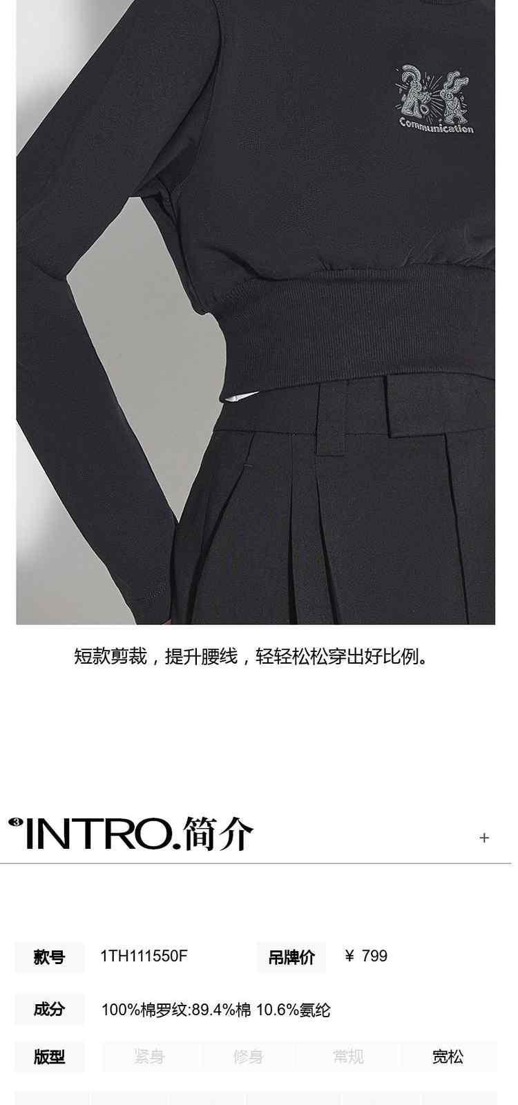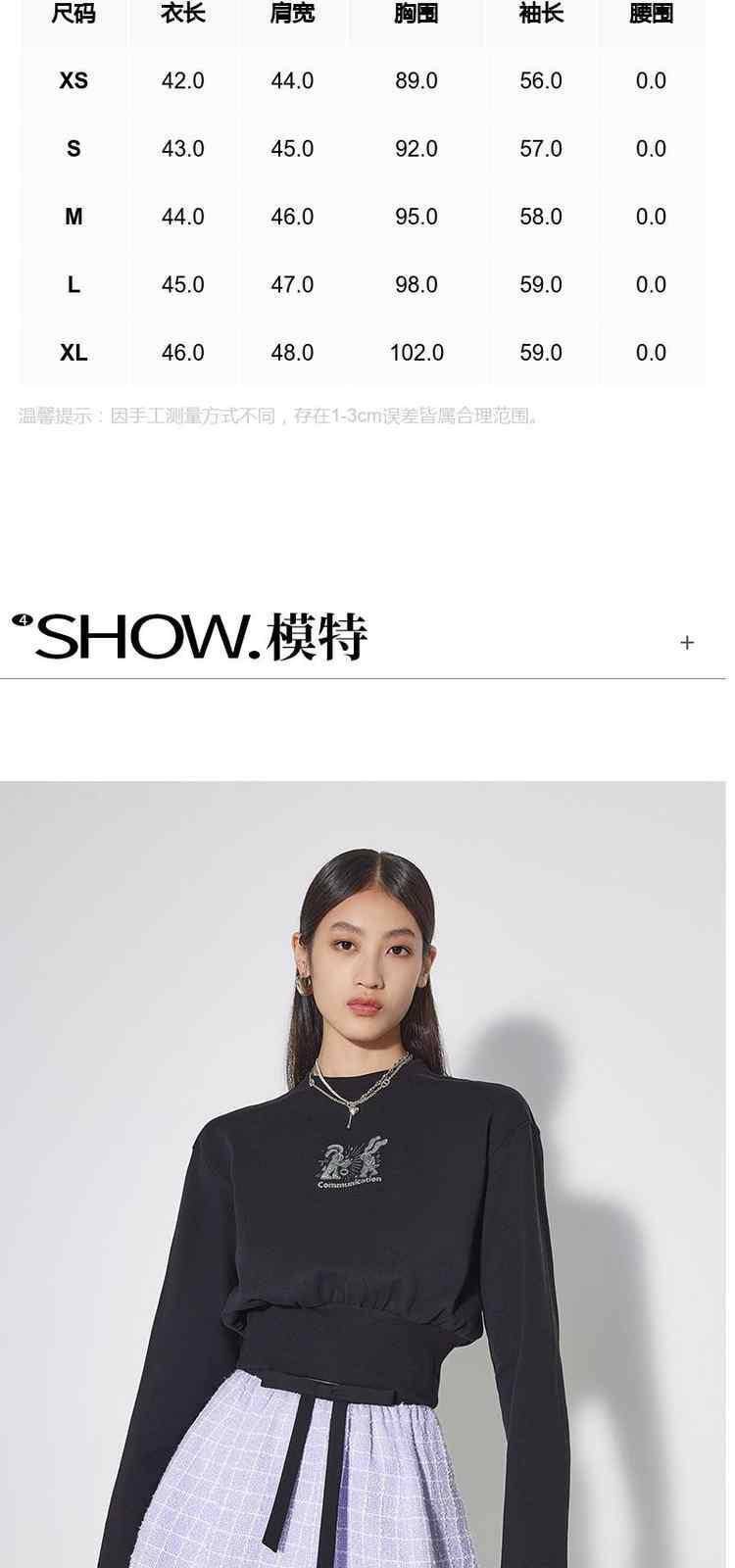 商品名称:黑标系列春装 印花烫片短款纯棉长袖卫衣女 285455