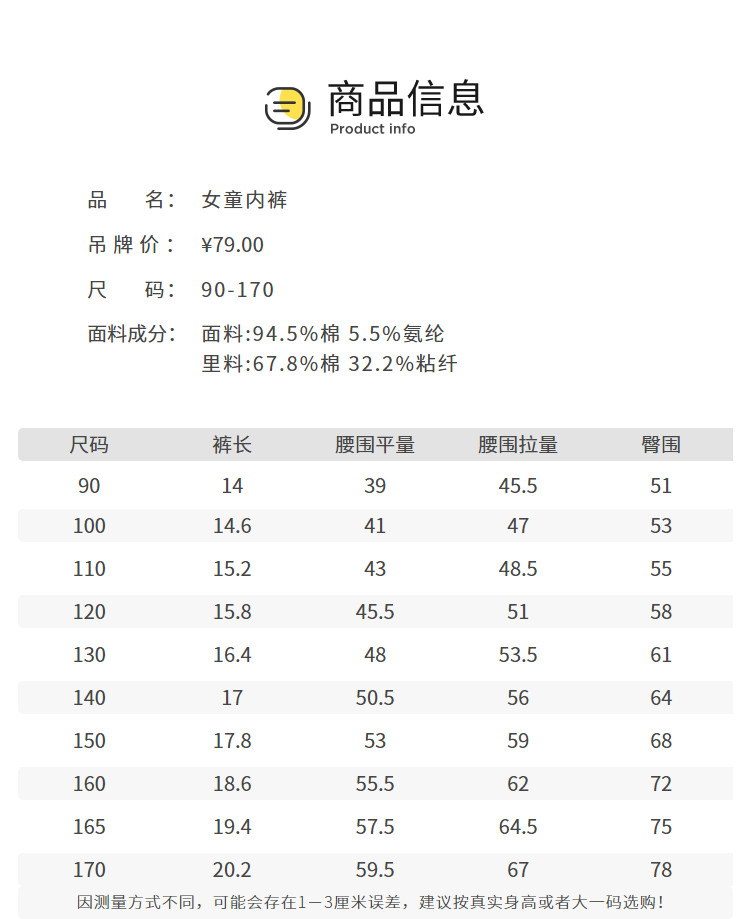 | 尺码 | 身高(cm) | 腰围(cm) | 裤长(cm) | 臀围(cm) | 适合年龄 | 号型 |