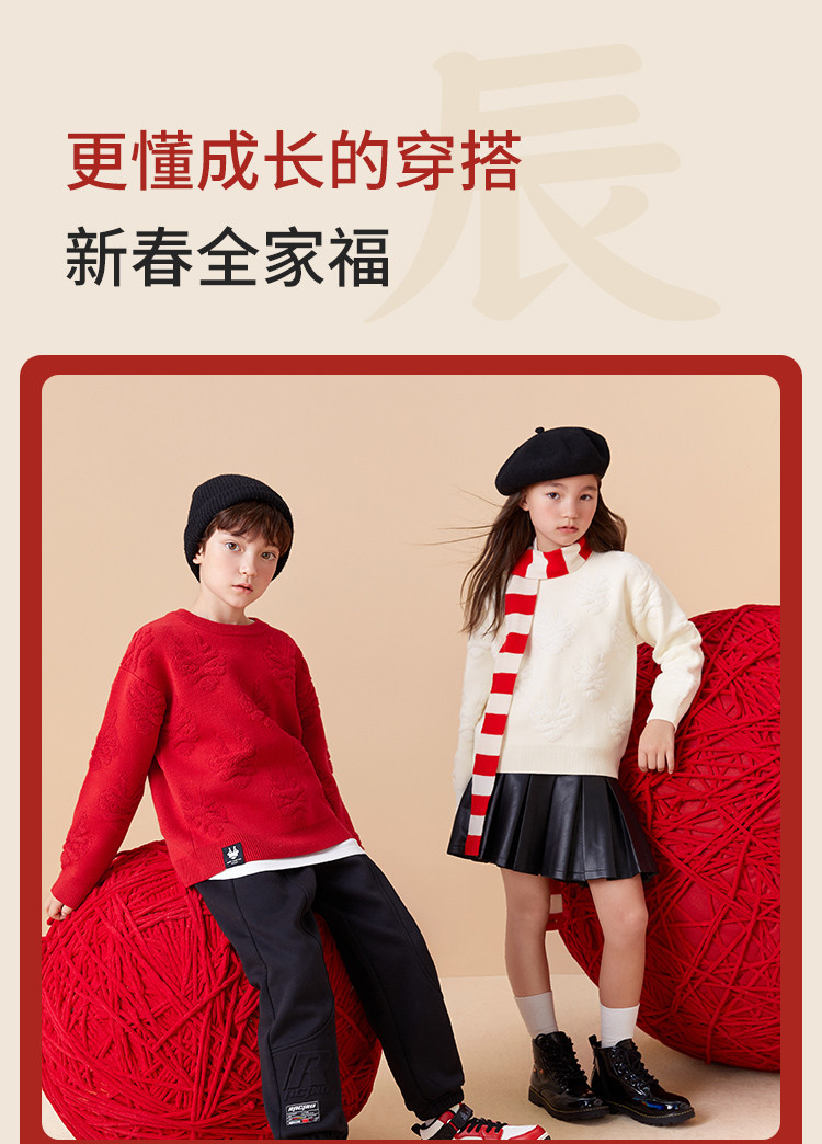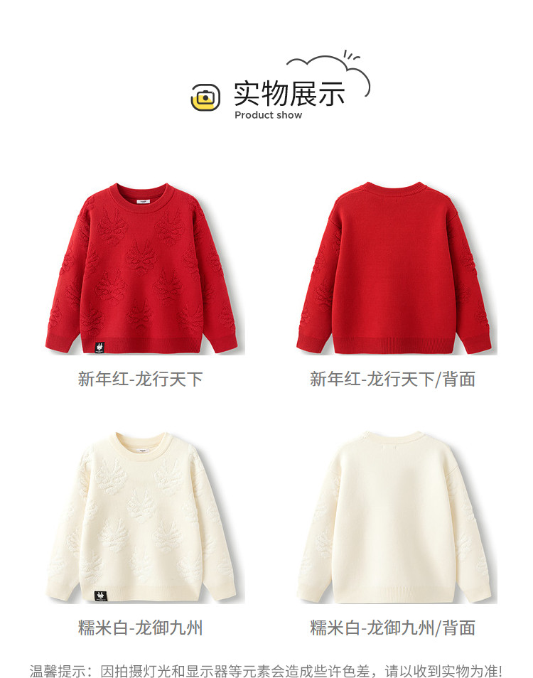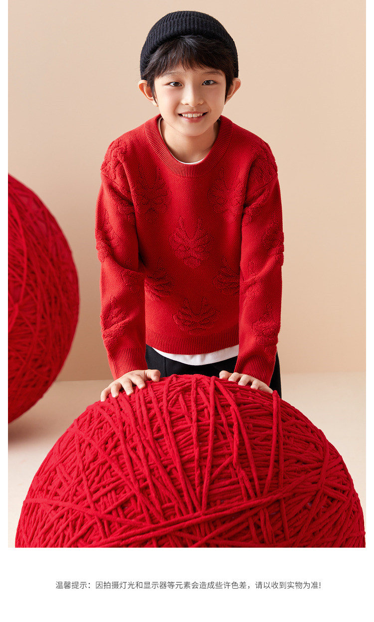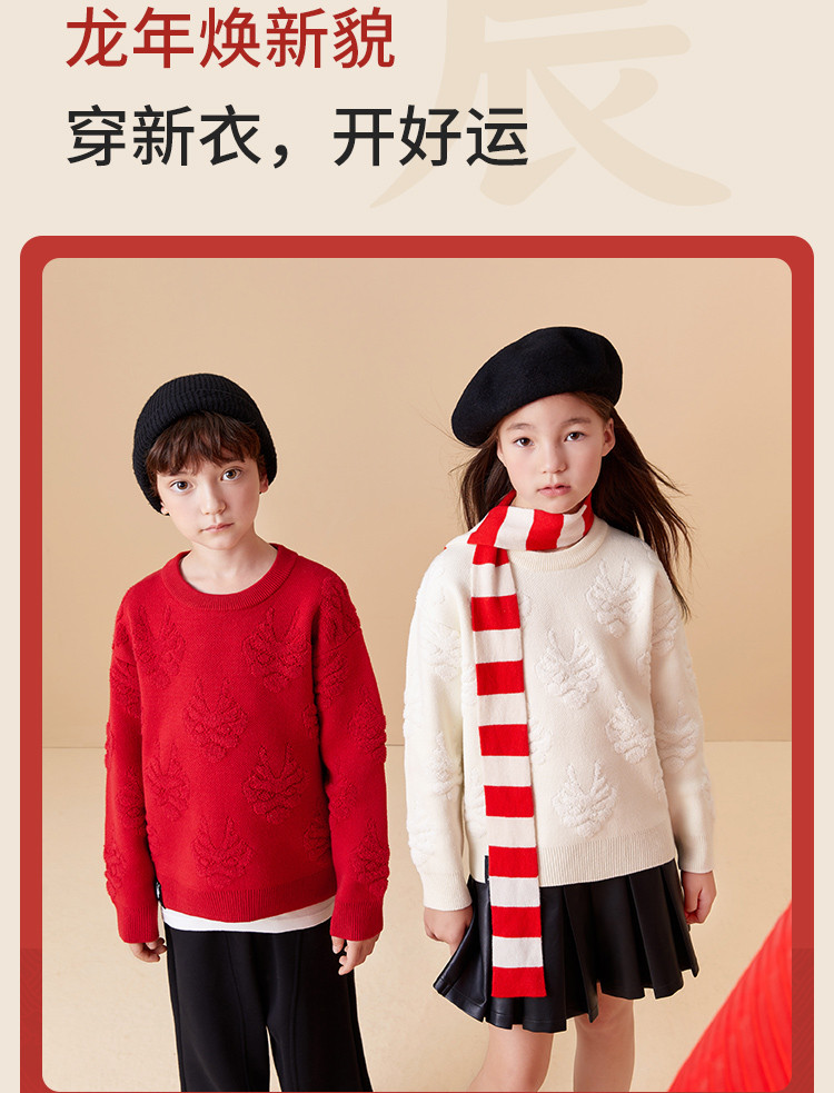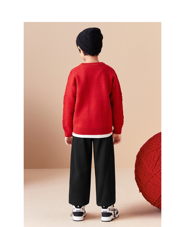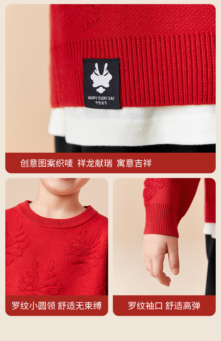 商品名称:龙纹儿童毛衣男童女童圆领毛衫春秋装红色针织衫洋气上衣亲子装 311237