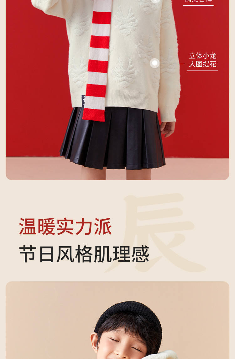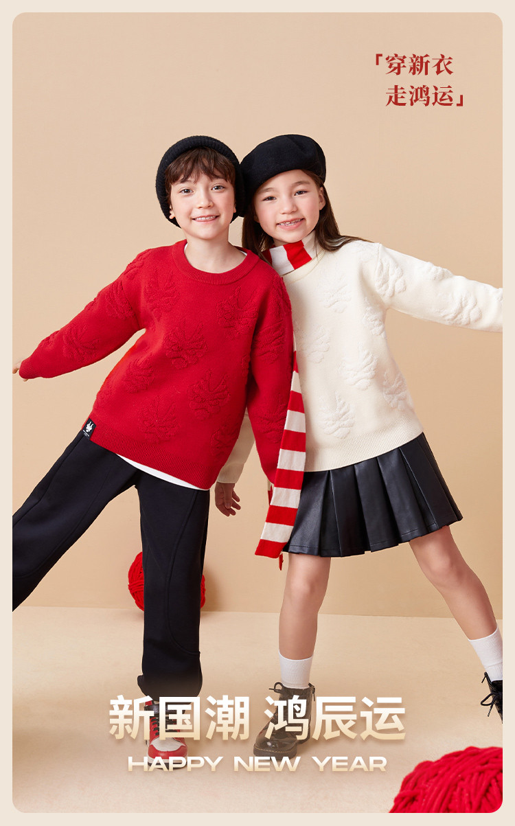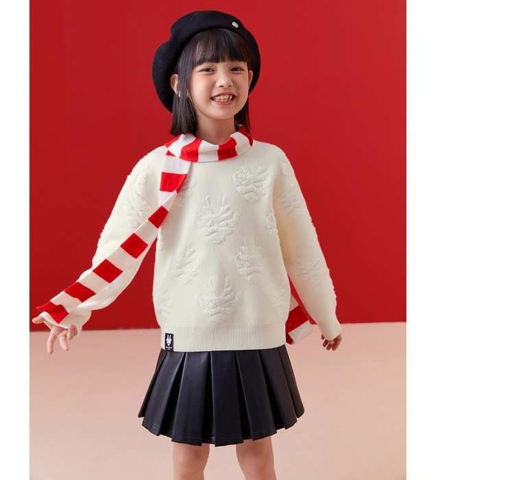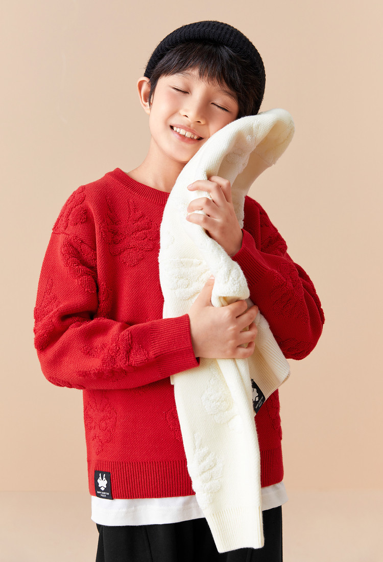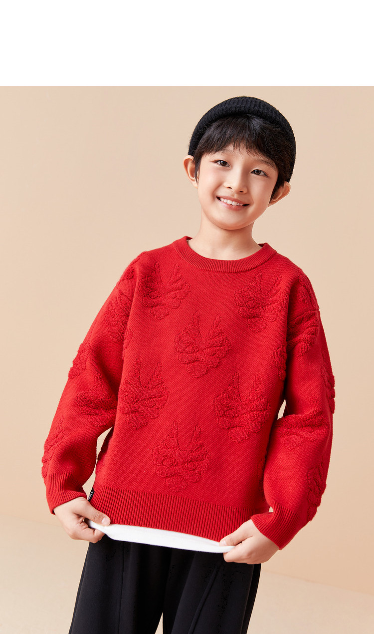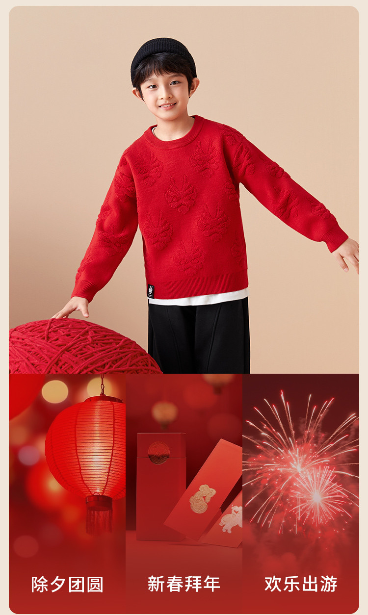 商品名称:龙纹儿童毛衣男童女童圆领毛衫春秋装红色针织衫洋气上衣亲子装 311237