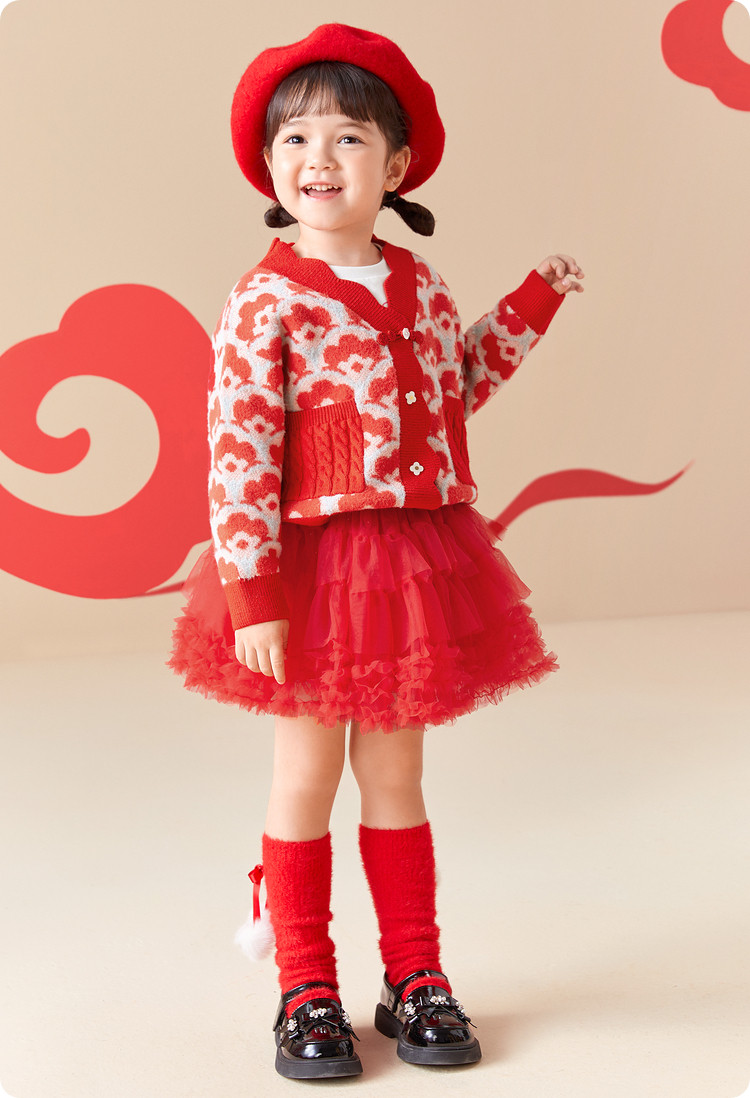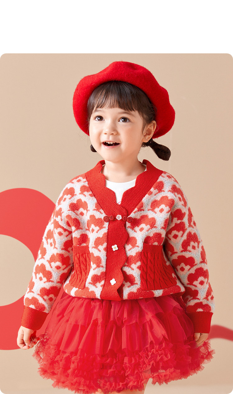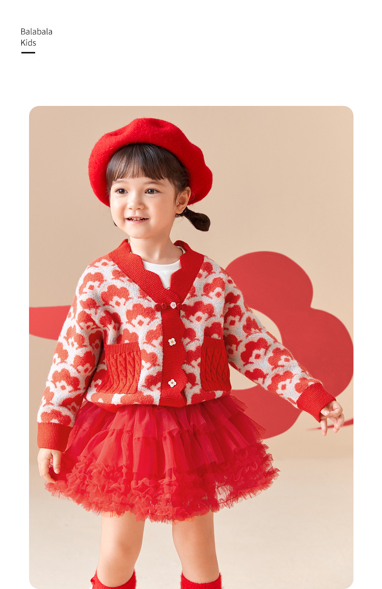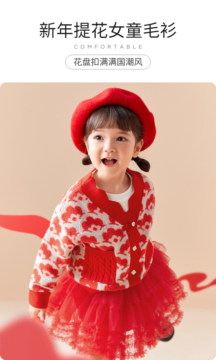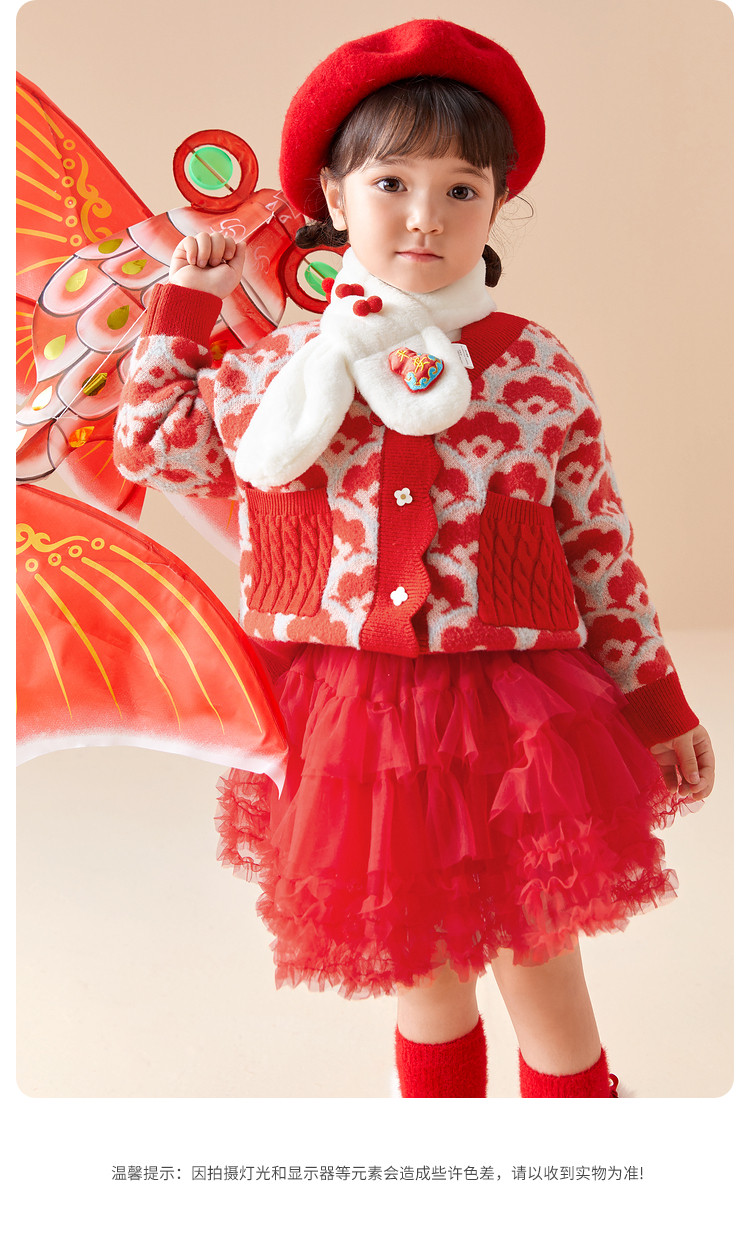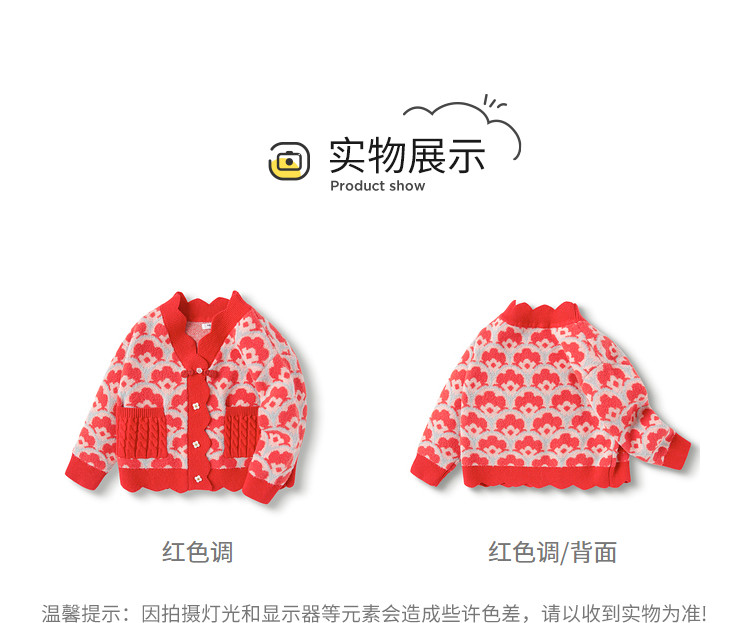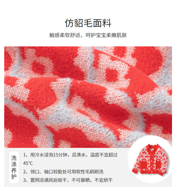 商品名称:仿貂毛提花开衫女童毛衣儿童春秋针织开衫甜美花边领 808389