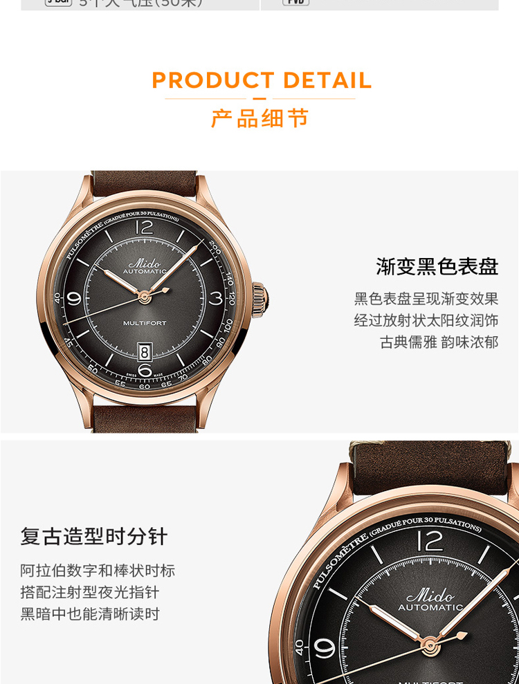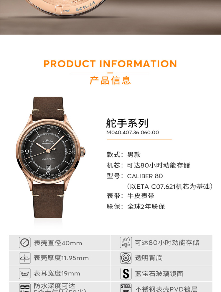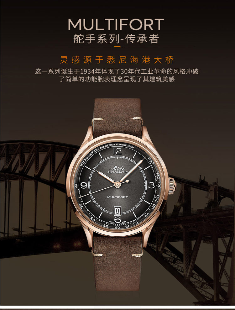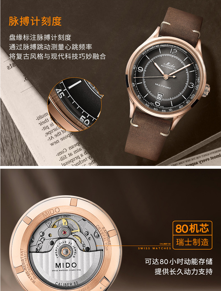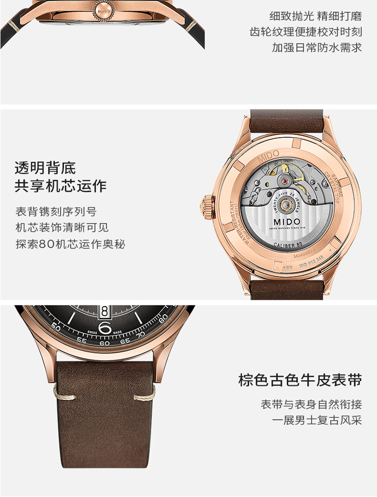 商品名称:Mido美度 舵手系列自动机械皮带复古手表男表 (不支持无理由退换货)