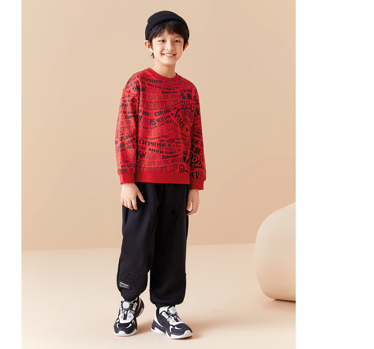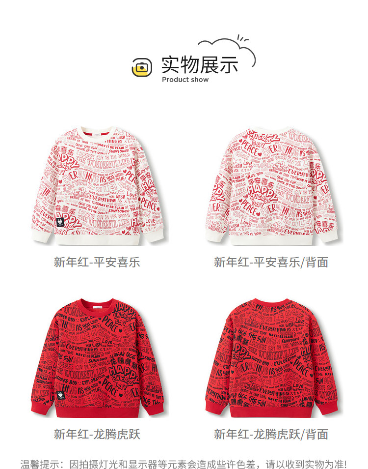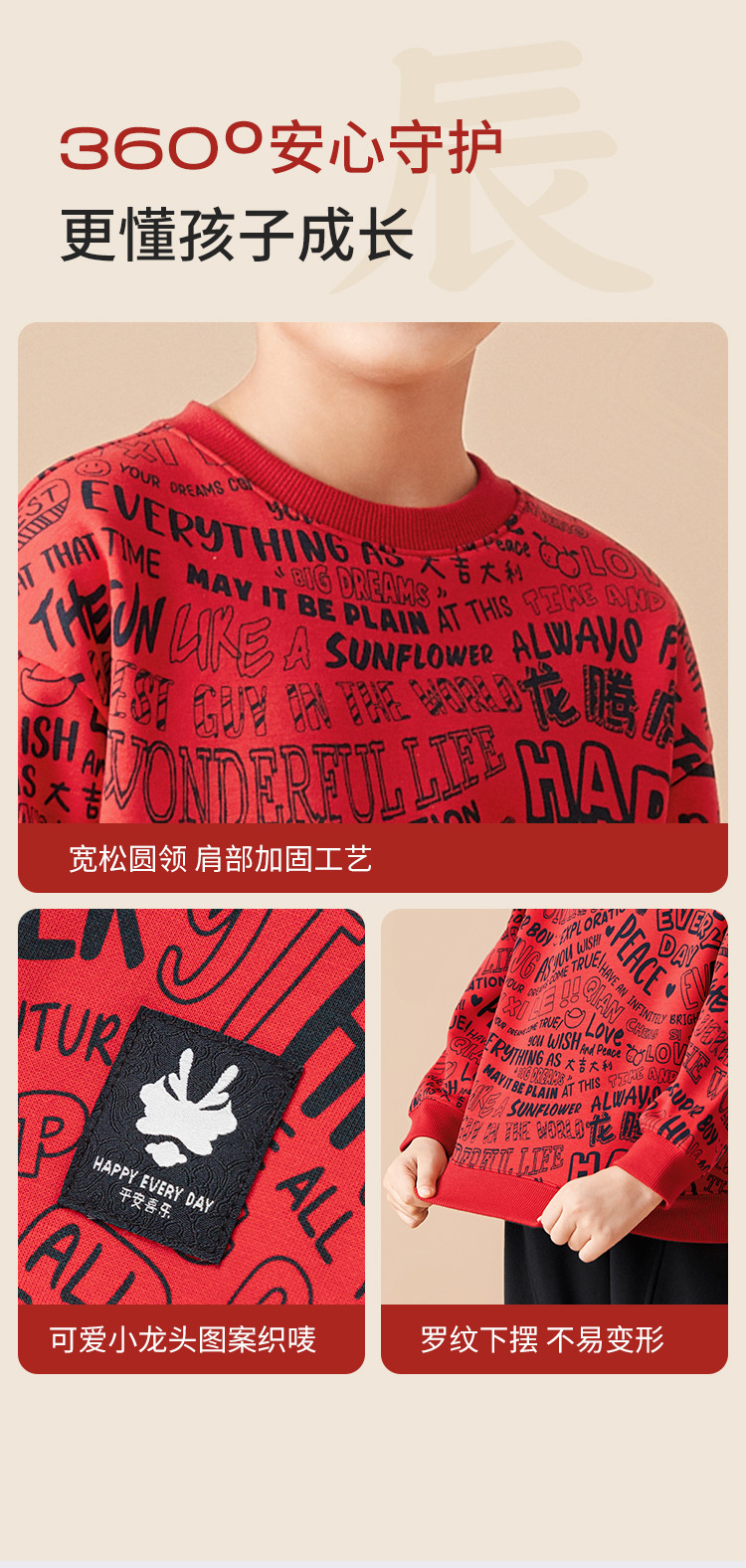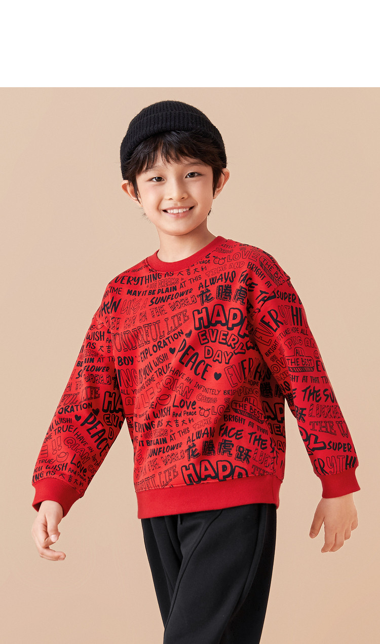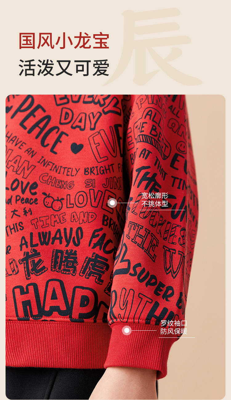 商品名称:国风印花儿童卫衣男童女童春秋装圆领童装上衣红色套头衫 697477