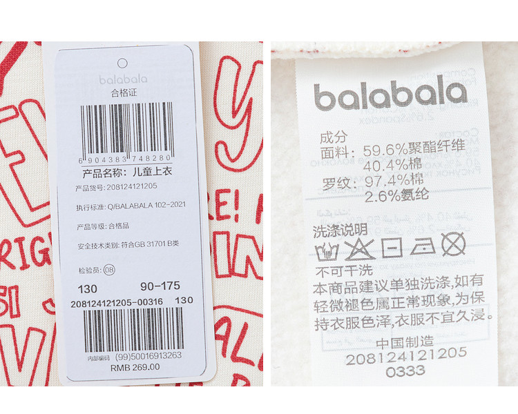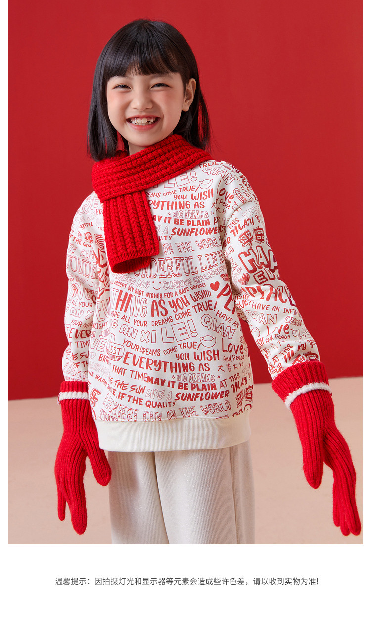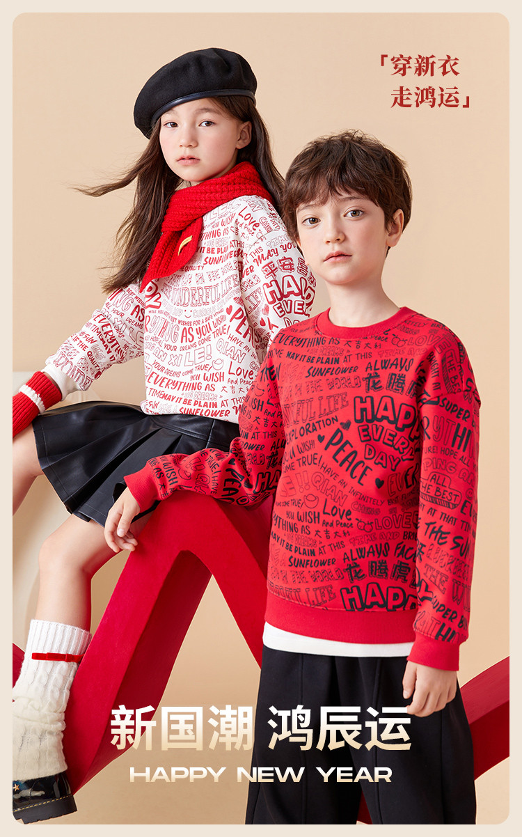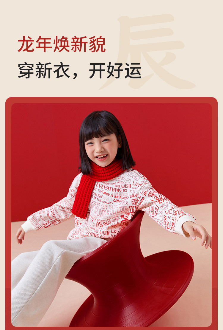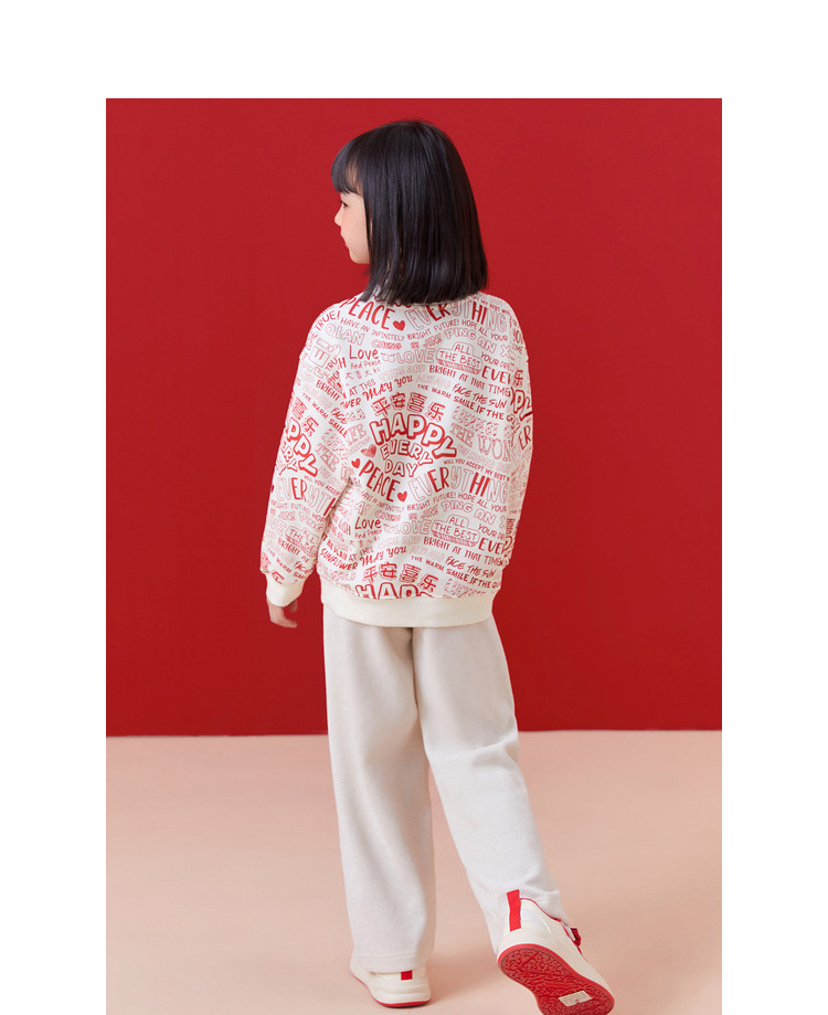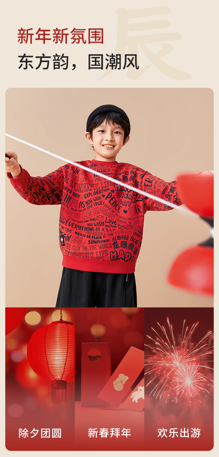 商品名称:国风印花儿童卫衣男童女童春秋装圆领童装上衣红色套头衫 697477