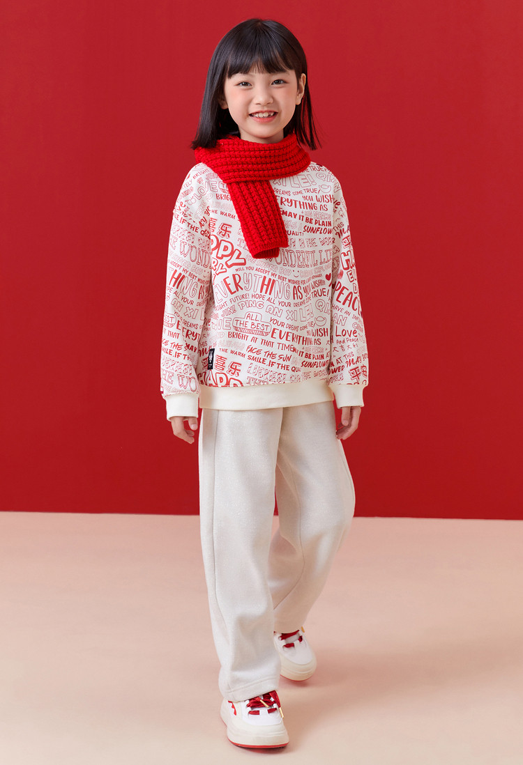 国风印花儿童卫衣男童女童春秋装圆领童装上衣红色套头衫 697477