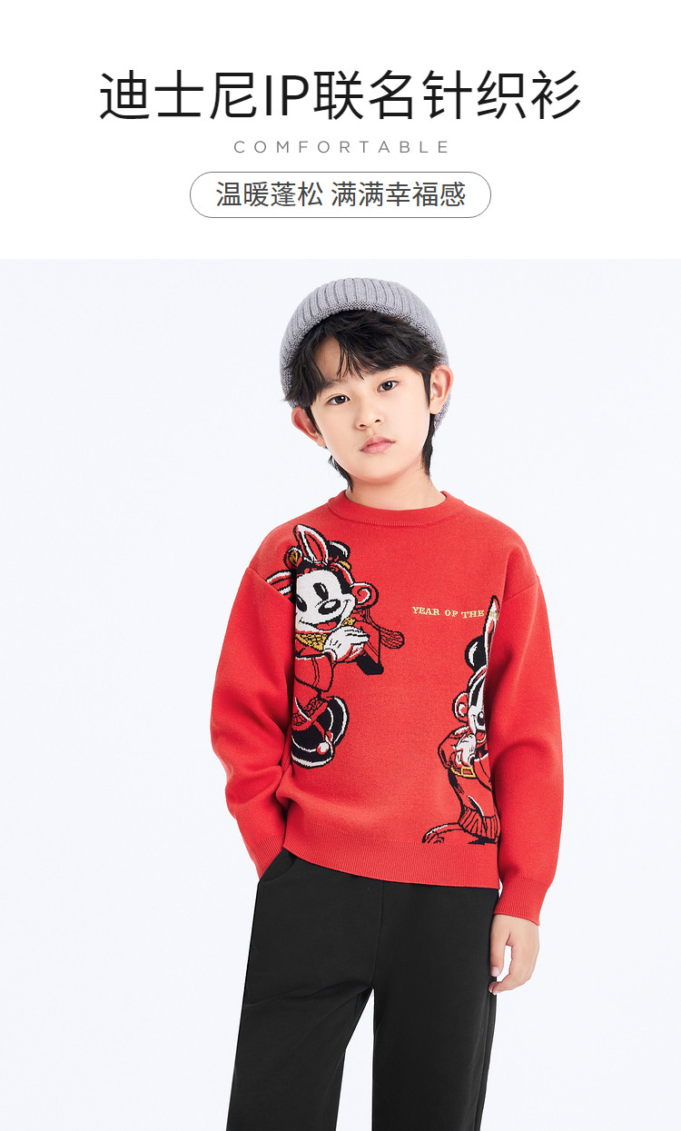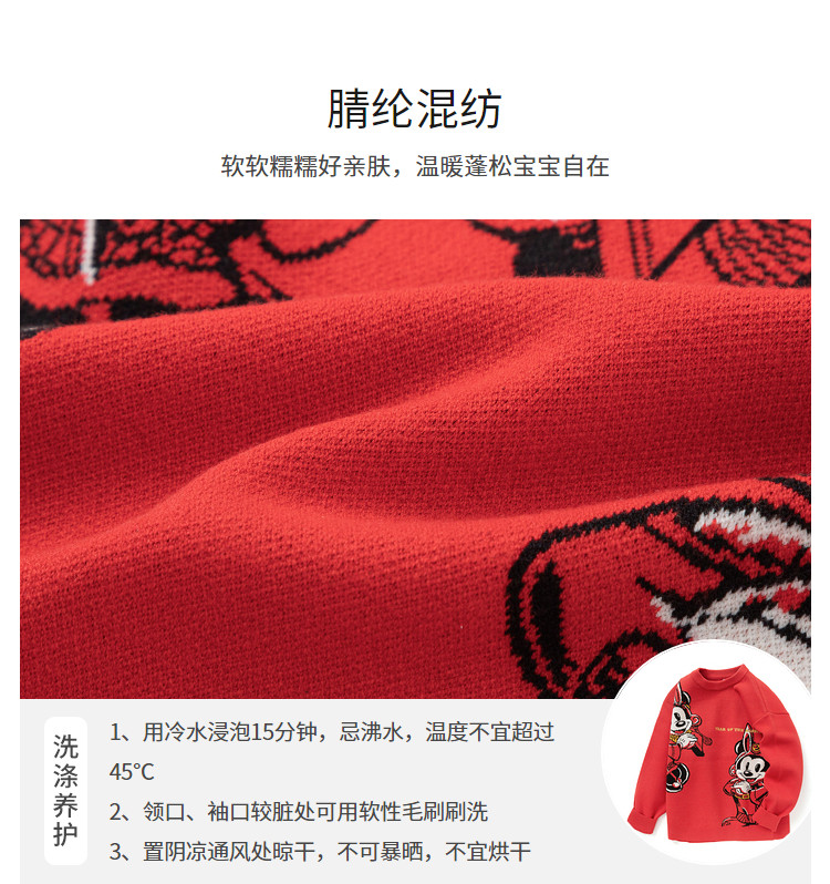商品名称:迪士尼IP内搭针织衫儿童开衫毛衣中大童男童春秋装红色童装上衣 831813
