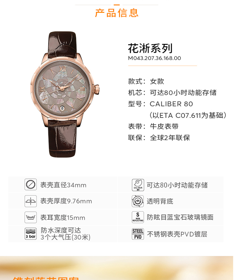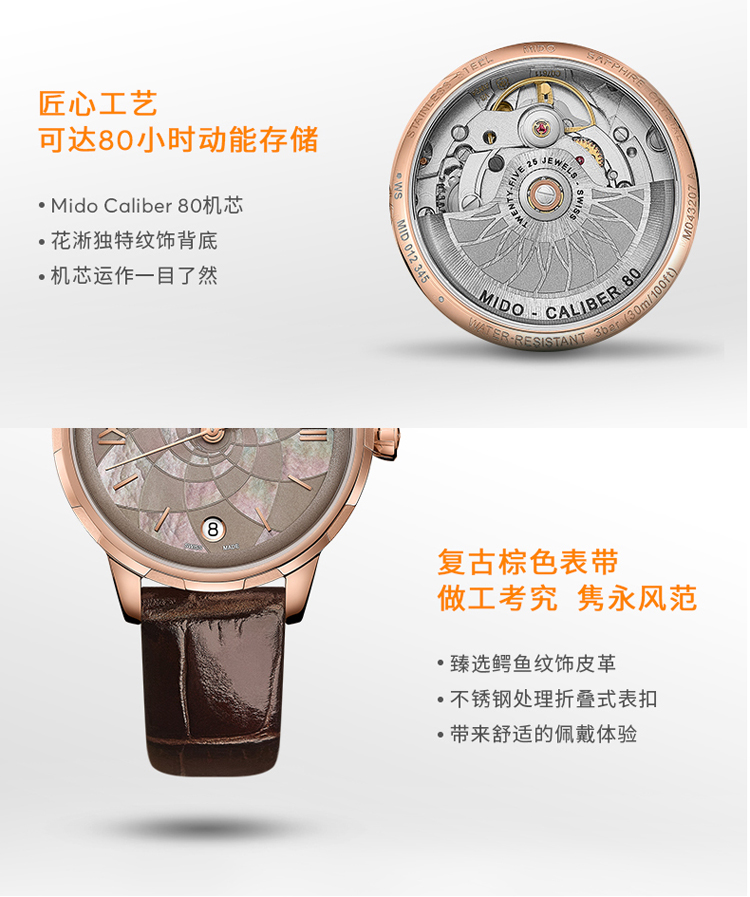 商品名称:Mido美度 花淅系列自动机械手表女表 (不支持无理由退换货)