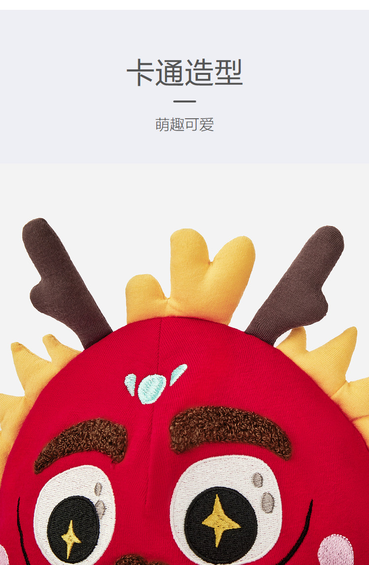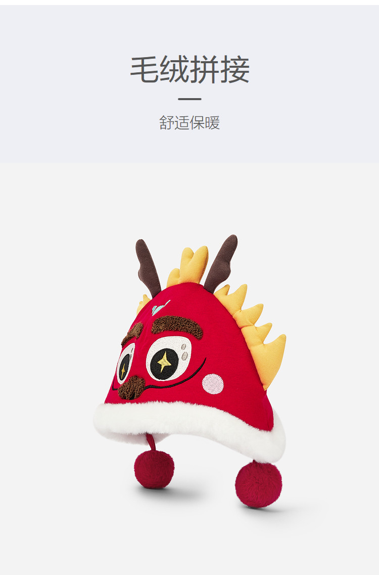 商品名称:宝宝帽子龙年男童女童保暖帽加绒防风本命年红色喜庆立体萌趣造型 409221