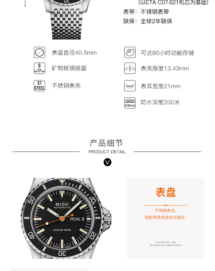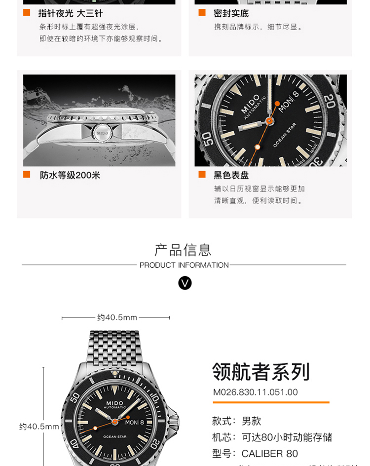 商品名称:Mido美度 领航者75周年自动机械手表男表 (不支持无理由退换货)
