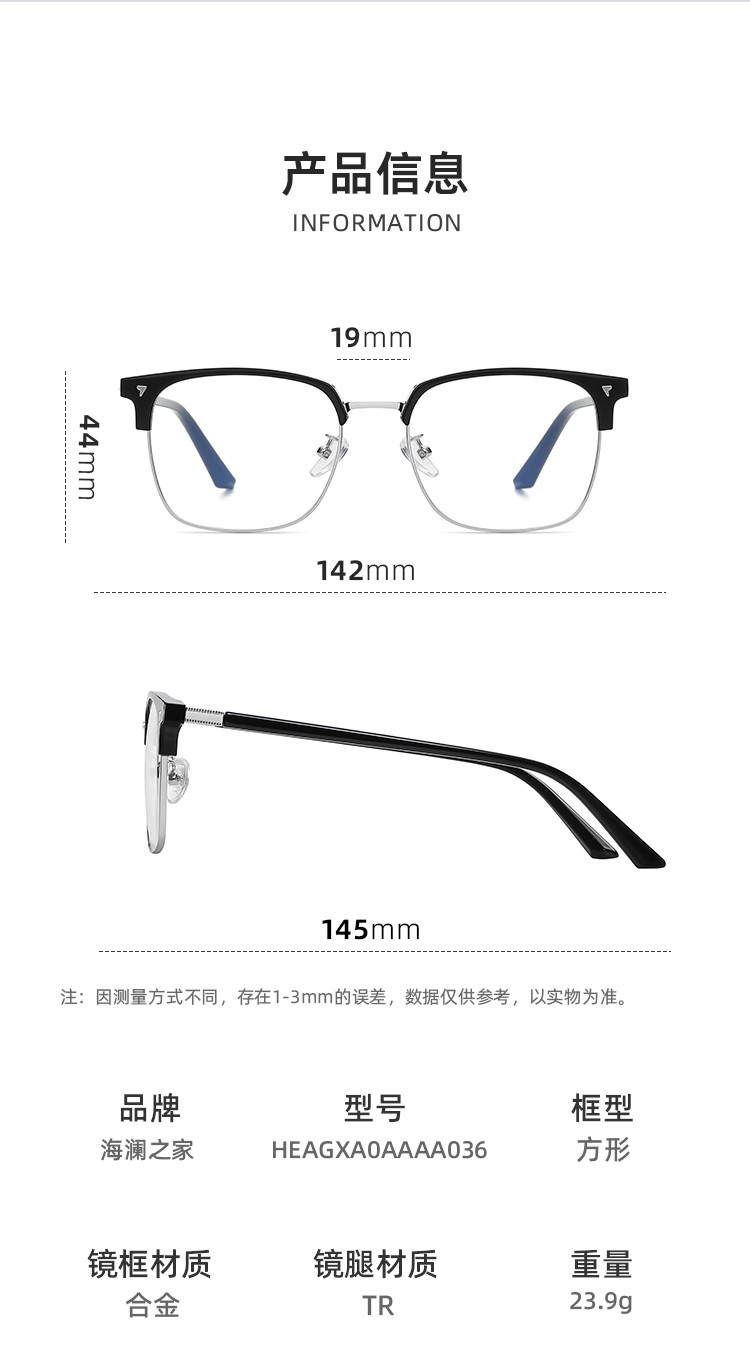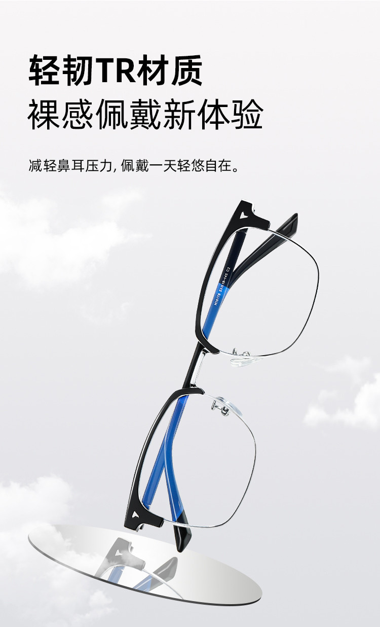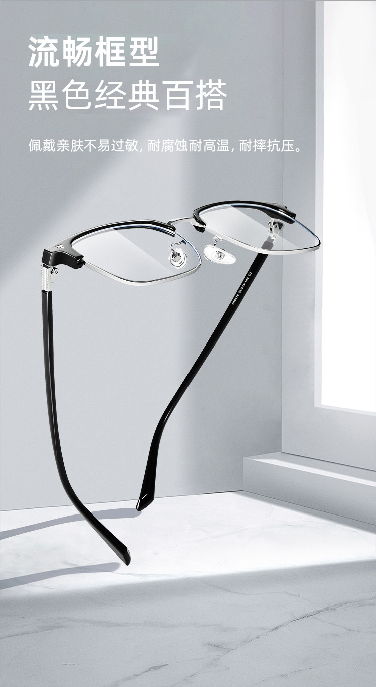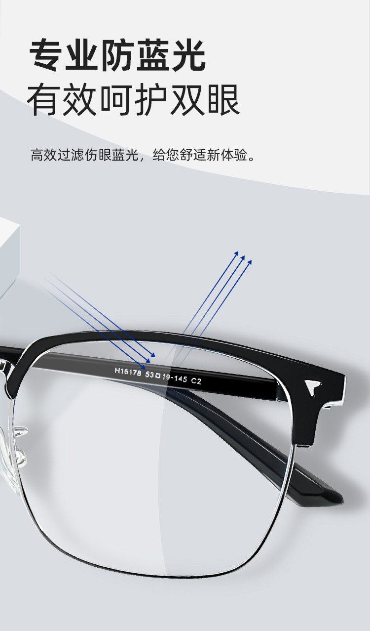 商品名称:超轻无度数防蓝光男士眼镜架装饰时尚方框近视眼镜框百搭平光护眼 950916