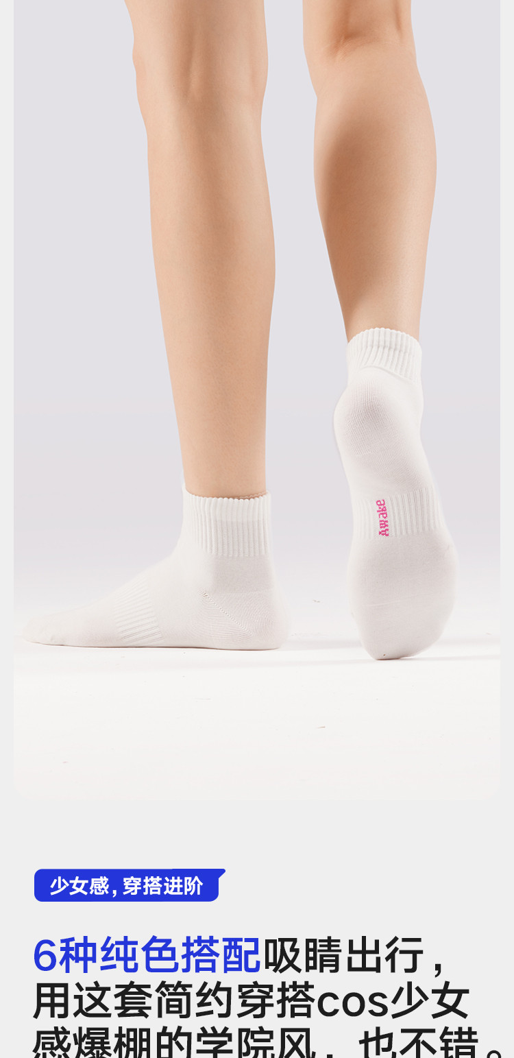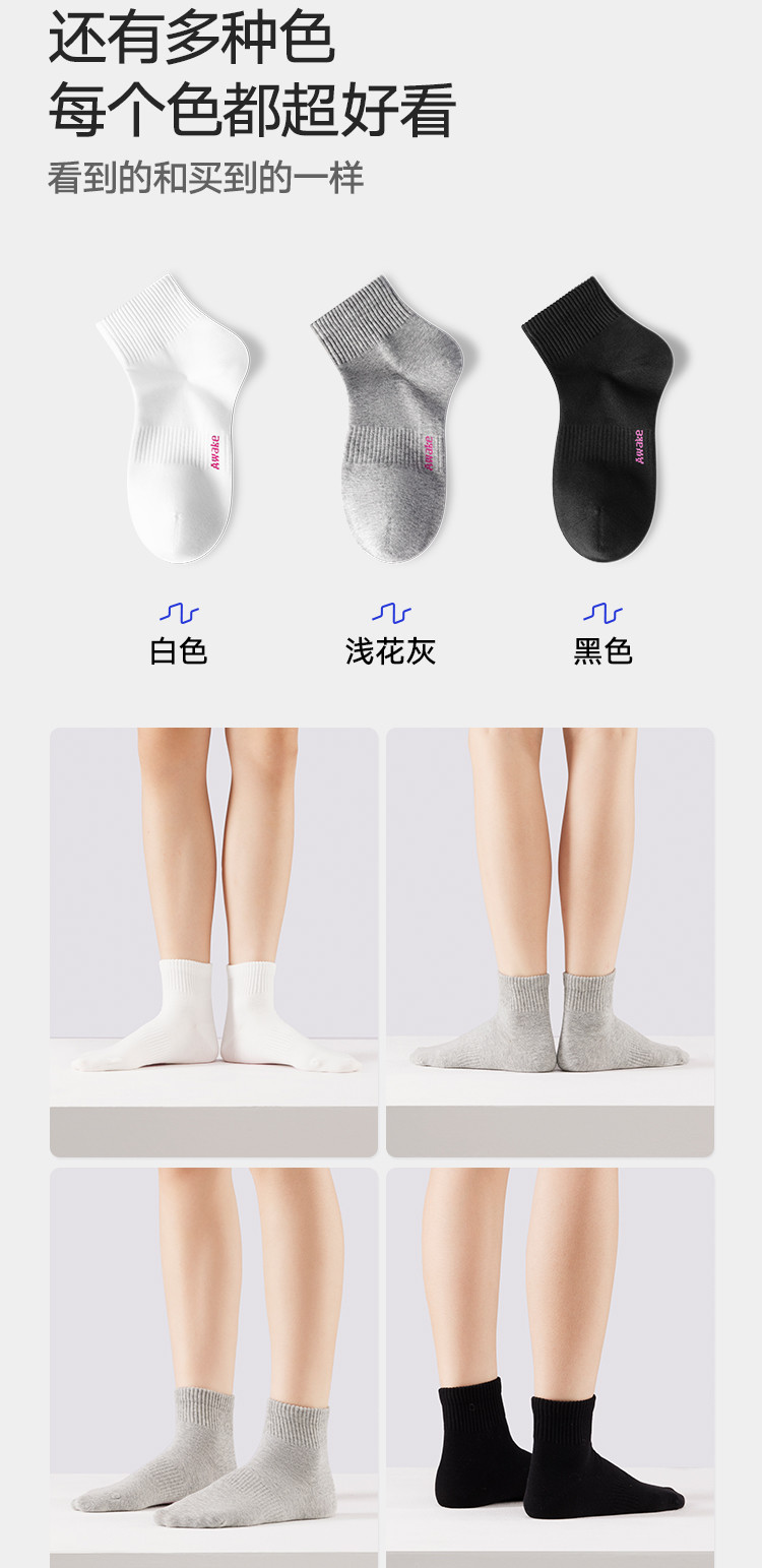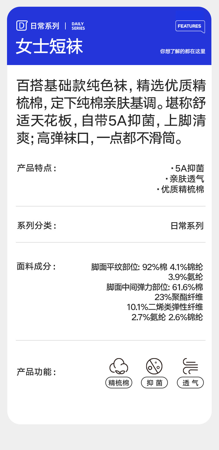 商品名称:【优质精梳棉 6双装】袜子女5A抑菌防臭透气女士棉袜弹力短袜 593434