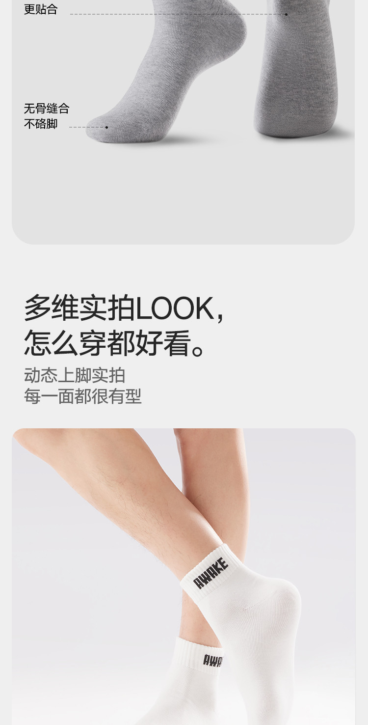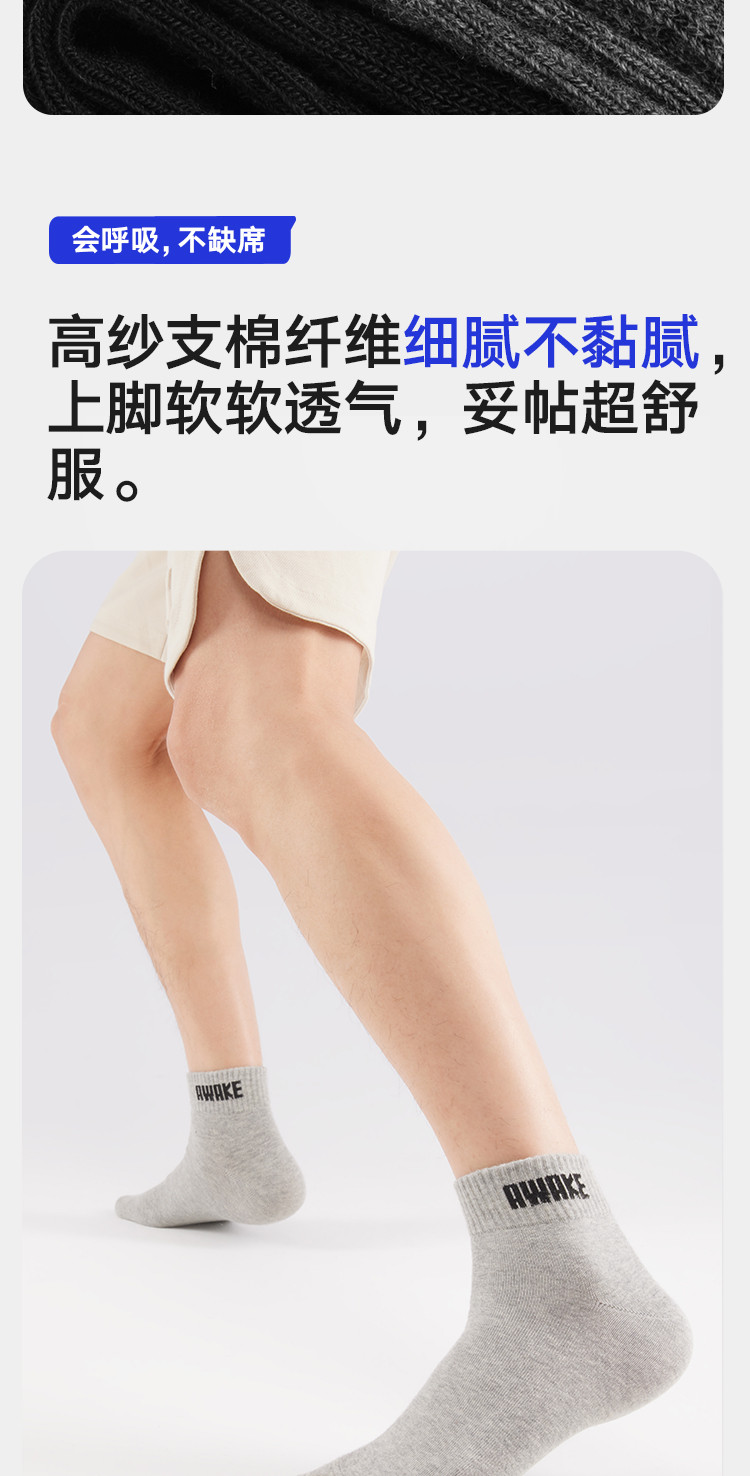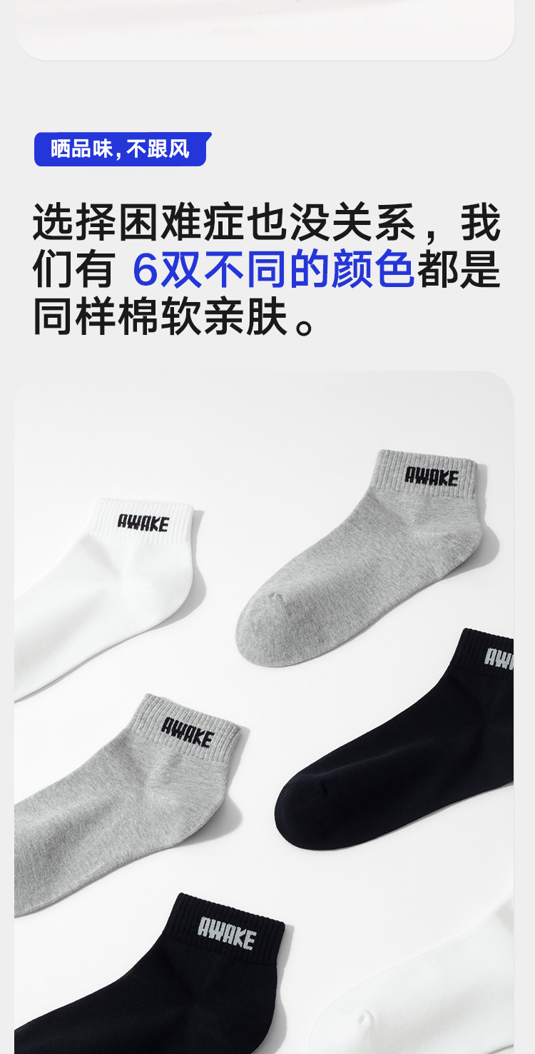 商品名称:【5A抑菌 6双装】男士袜子防臭透气短袜抗起球棉袜休闲运动袜 762394