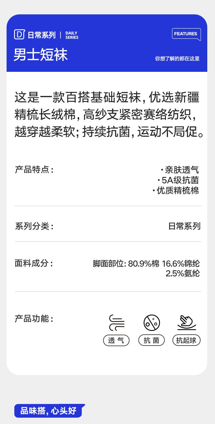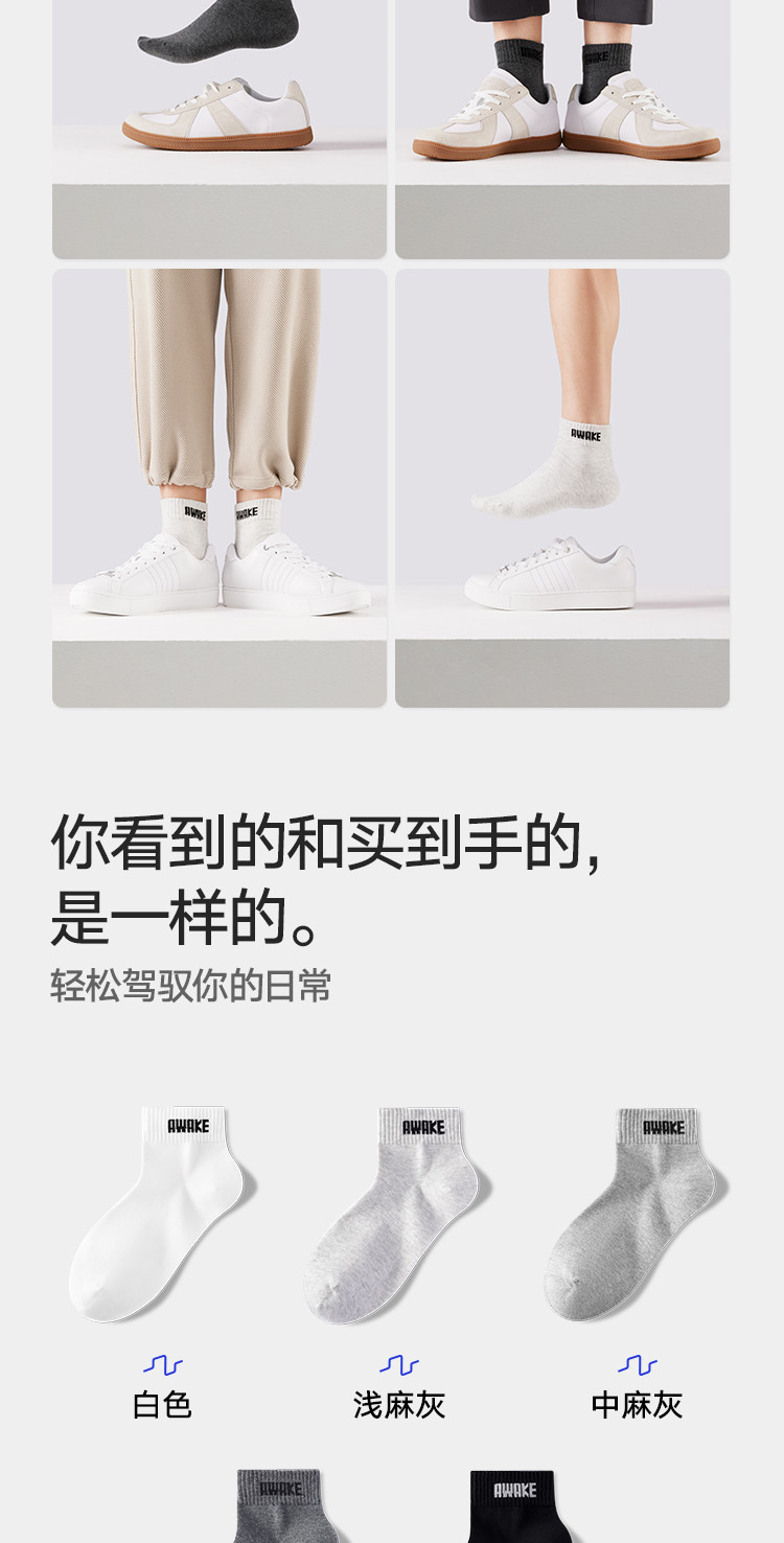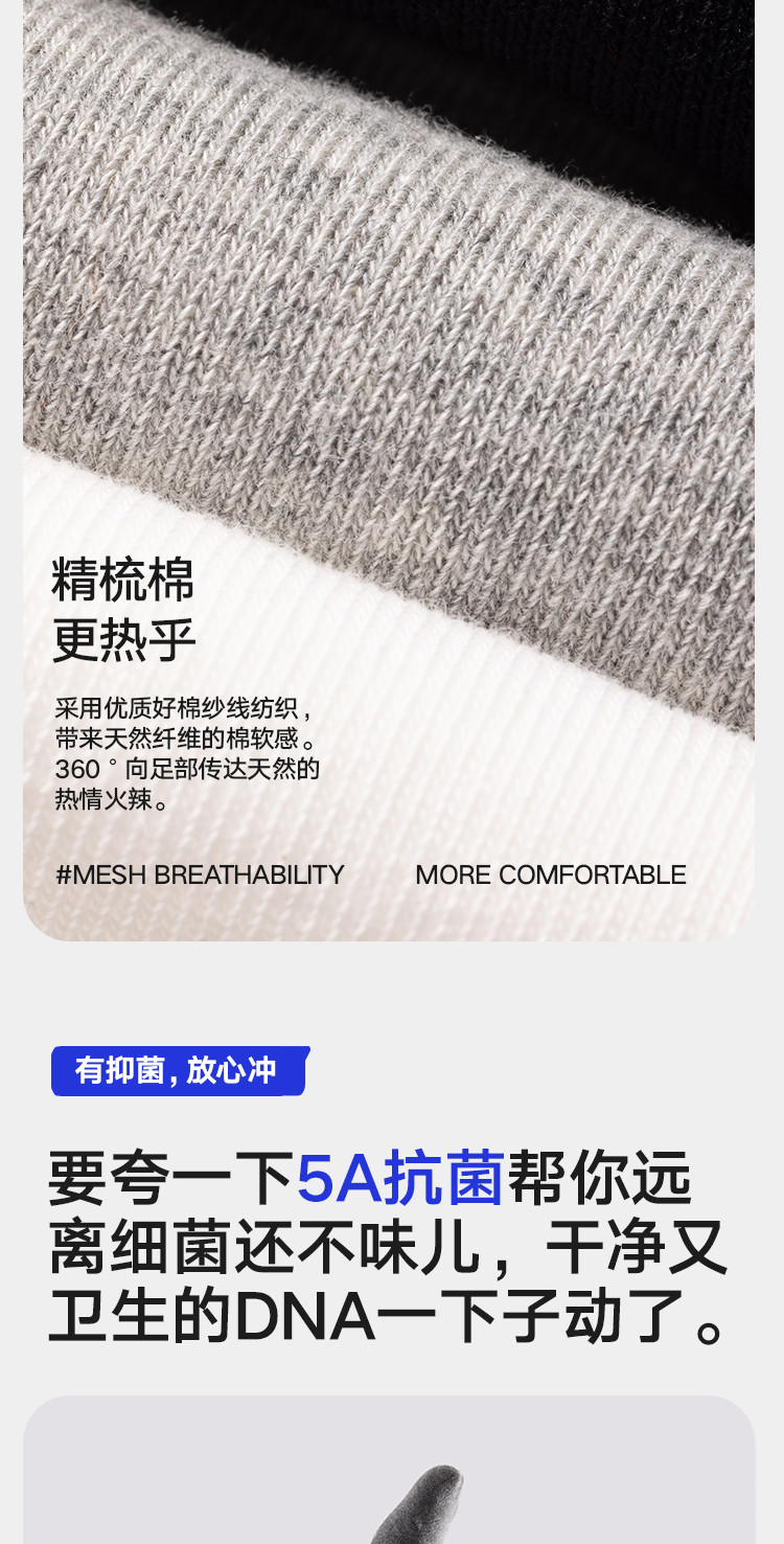 商品名称:【5A抑菌 6双装】男士袜子防臭透气短袜抗起球棉袜休闲运动袜 762394