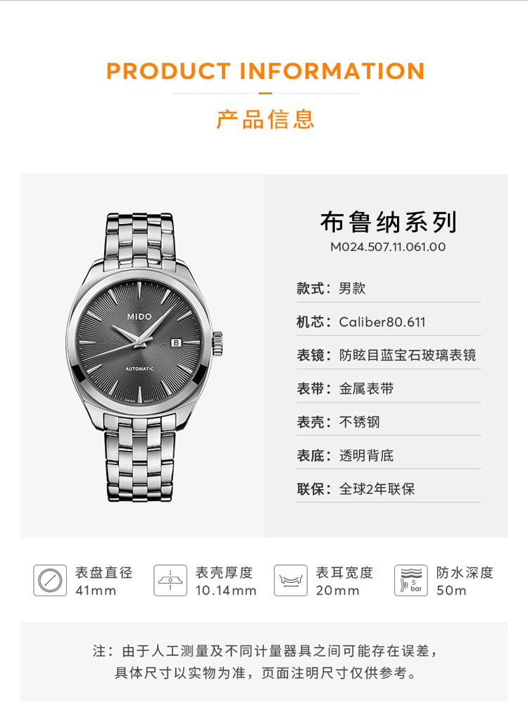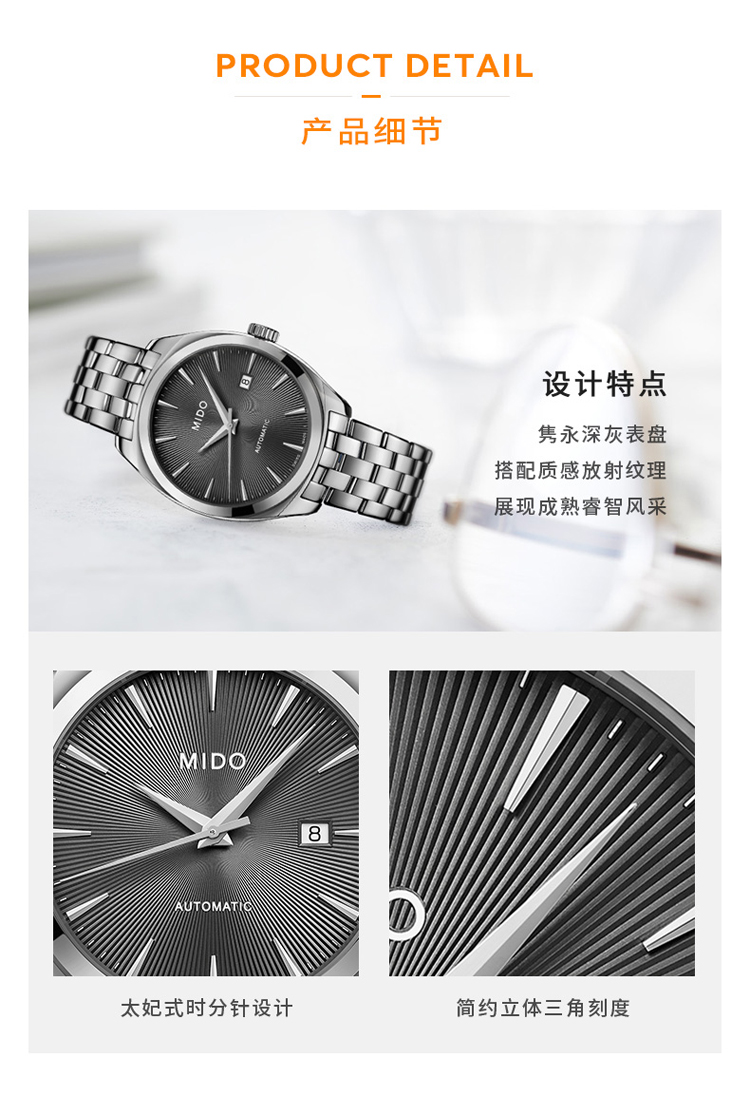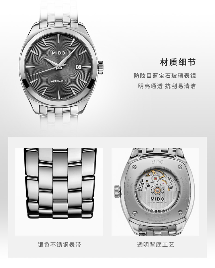 商品名称:MIDO美度 2020新款布鲁纳雅致长动能钢带男表(不支持无理由退换货)