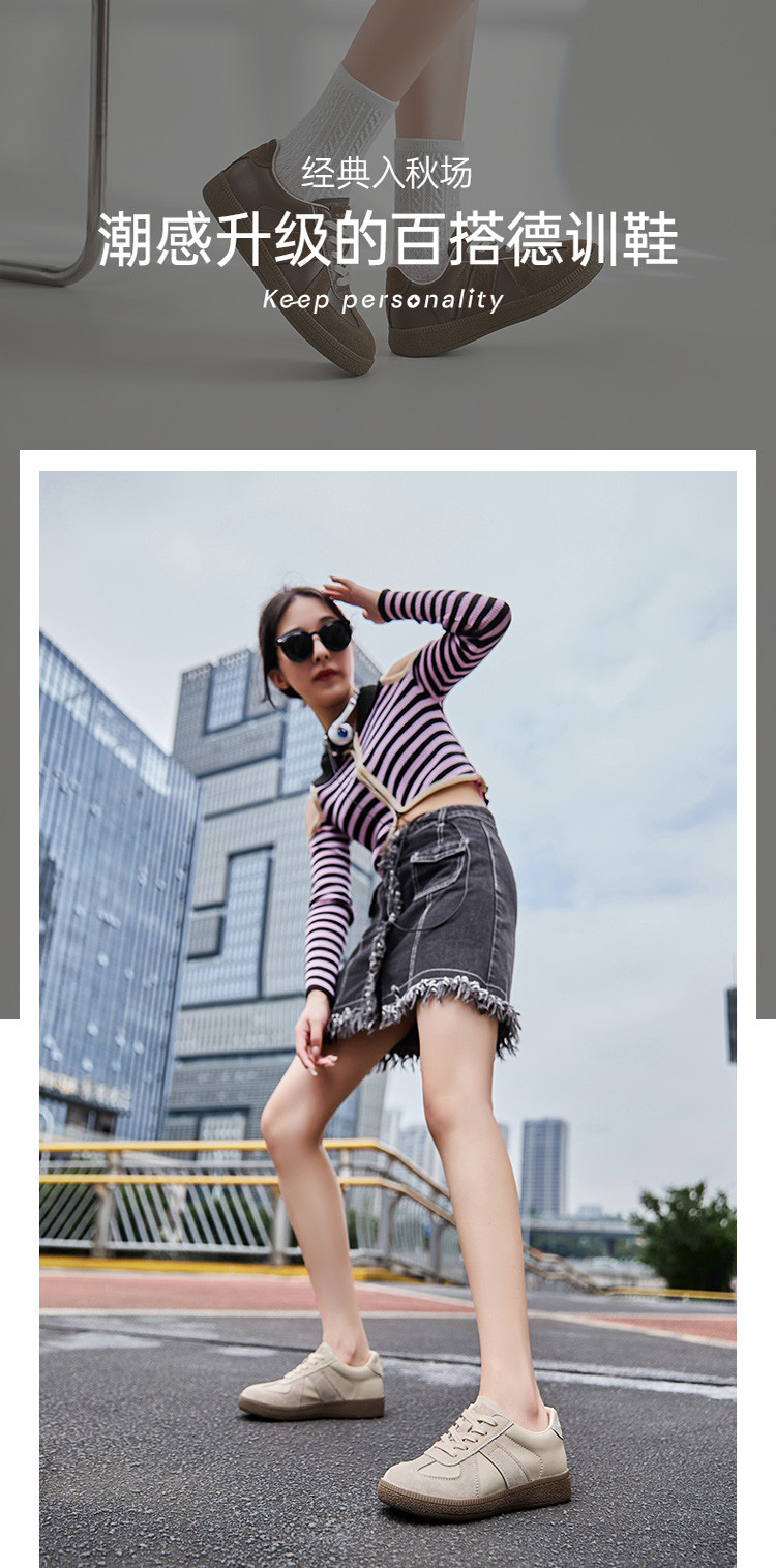 德训鞋女休闲鞋拼接时尚板鞋女鞋休闲百搭复古风鞋子女 198351