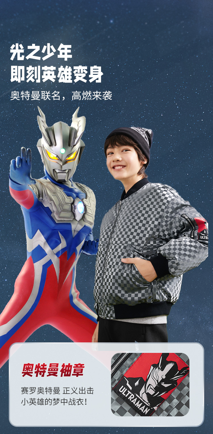 奥特曼IP儿童羽绒服男童短款外套冬季保暖童装中大童青少年上衣 961733