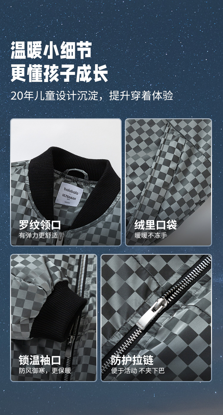 商品名称:奥特曼IP儿童羽绒服男童短款外套冬季保暖童装中大童青少年上衣 961733