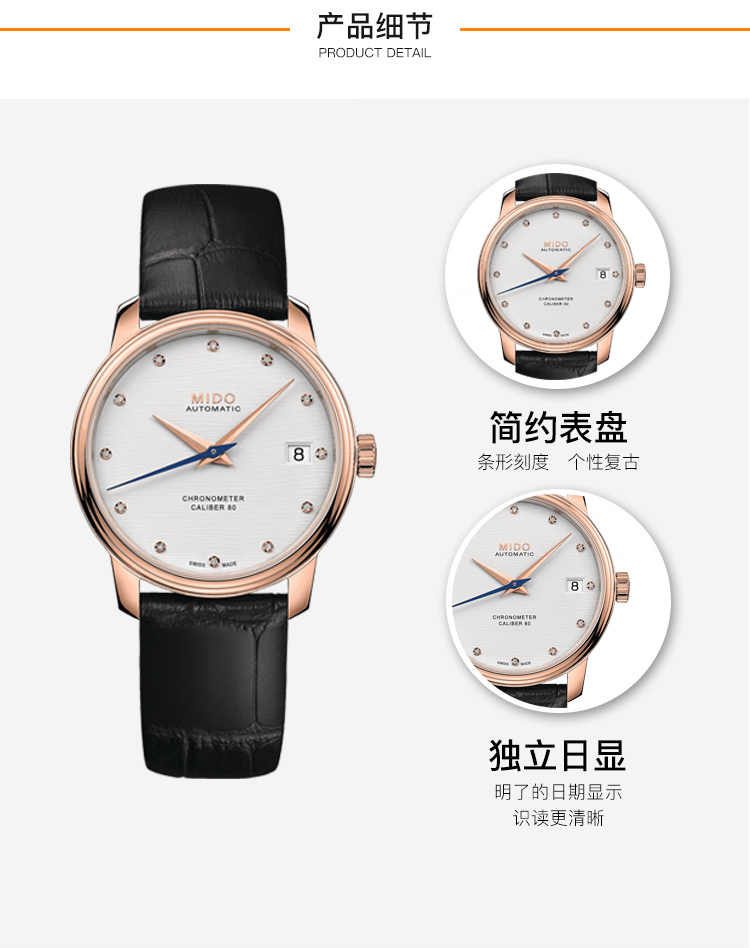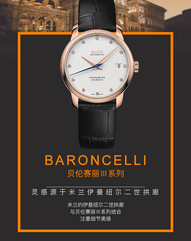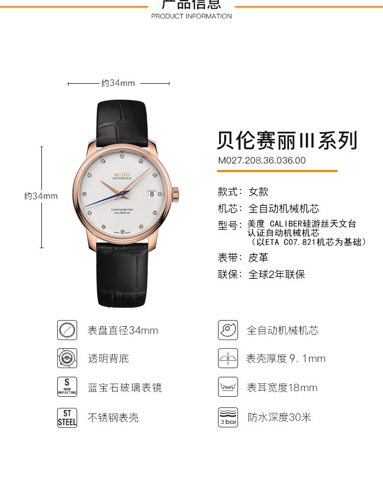 商品名称:MIDO美度 贝伦赛丽系列天文台认证女士腕表 (不支持无理由退换货)