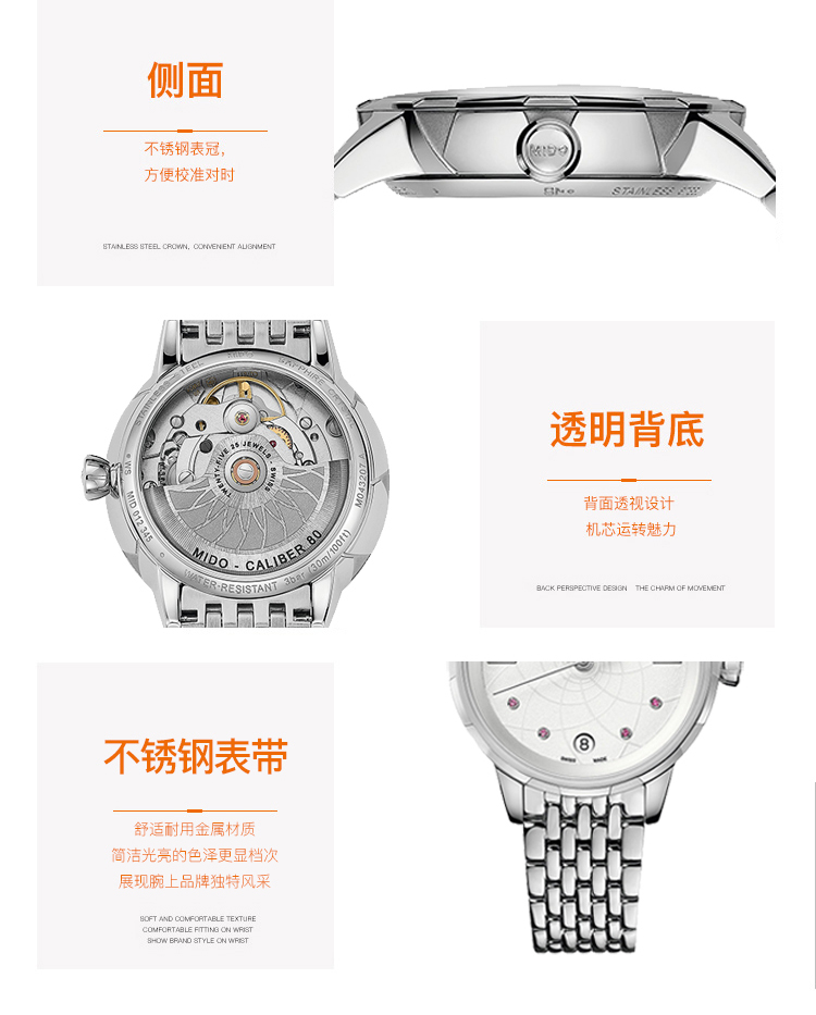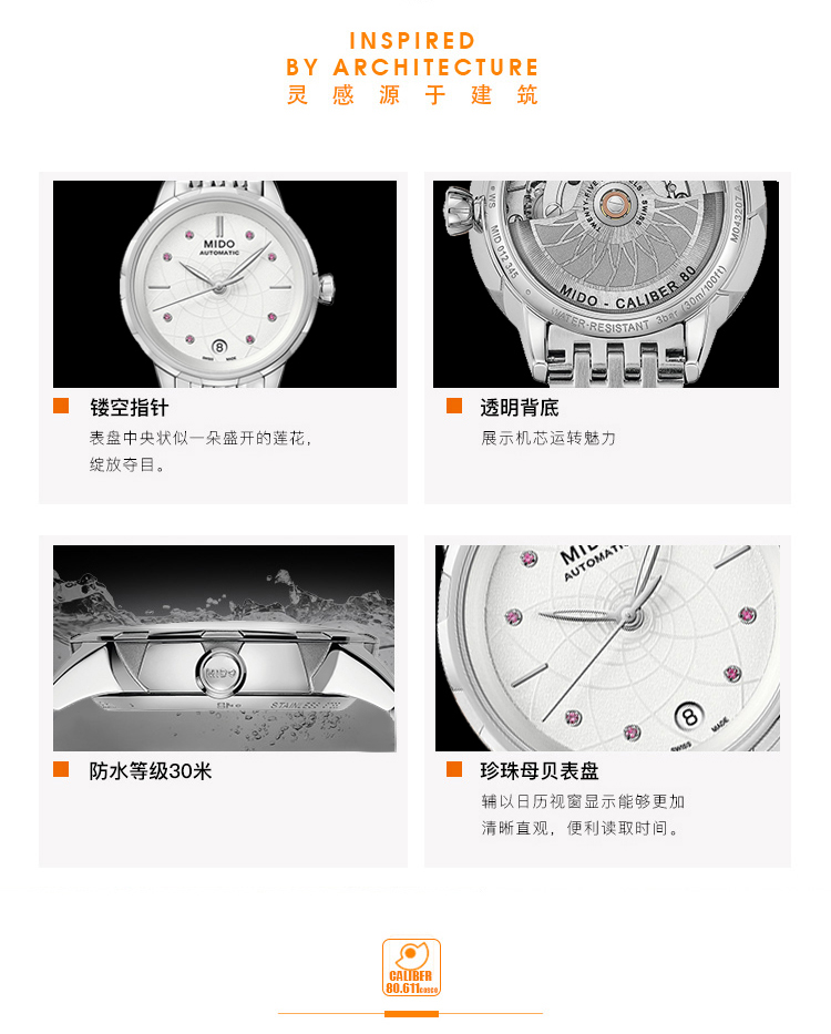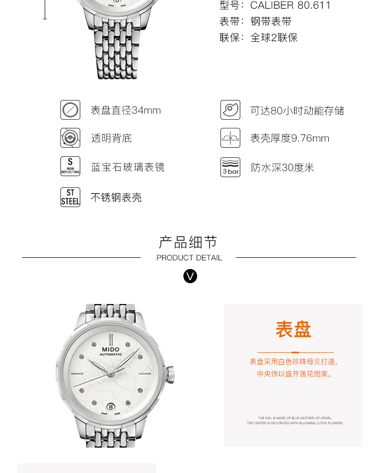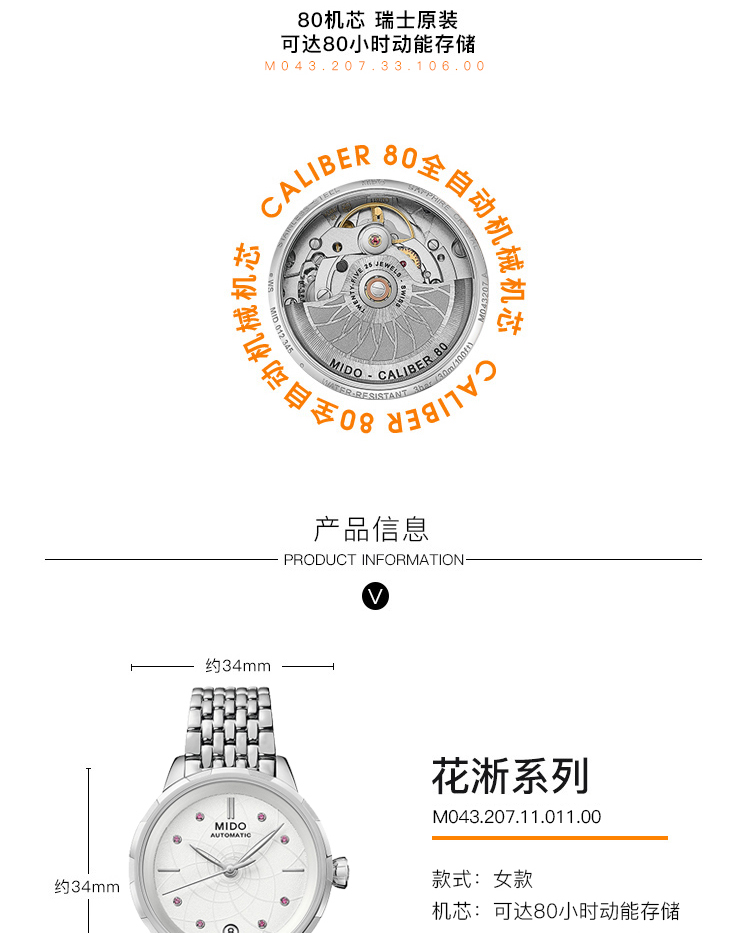 商品名称:MIDO美度 花淅系列长动能女士腕表 (不支持无理由退换货)
