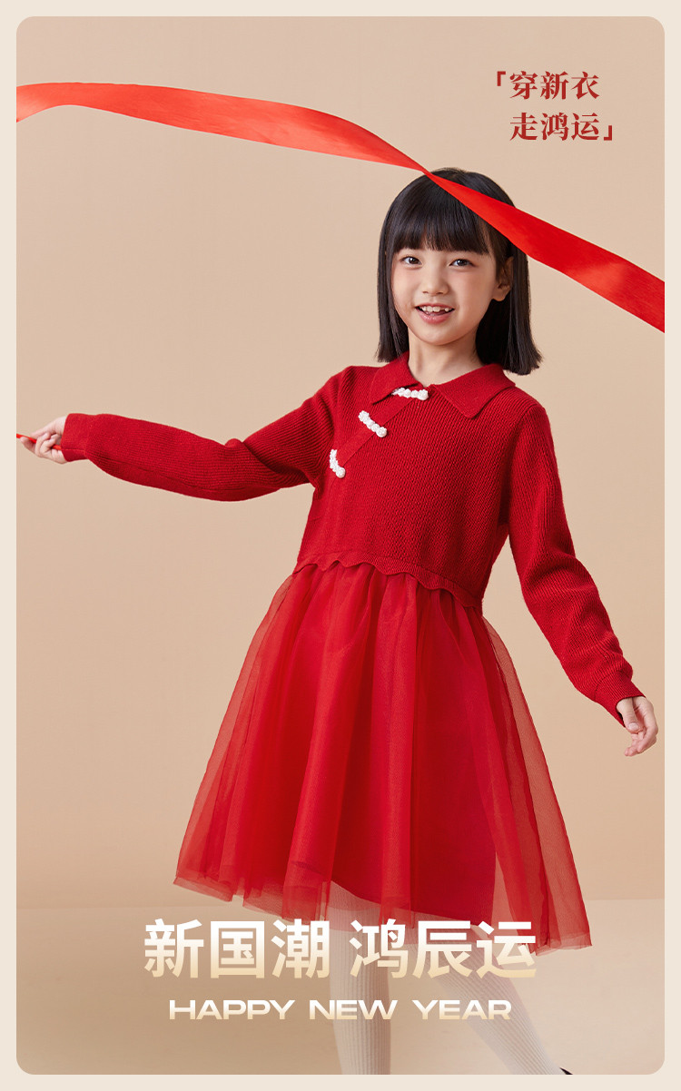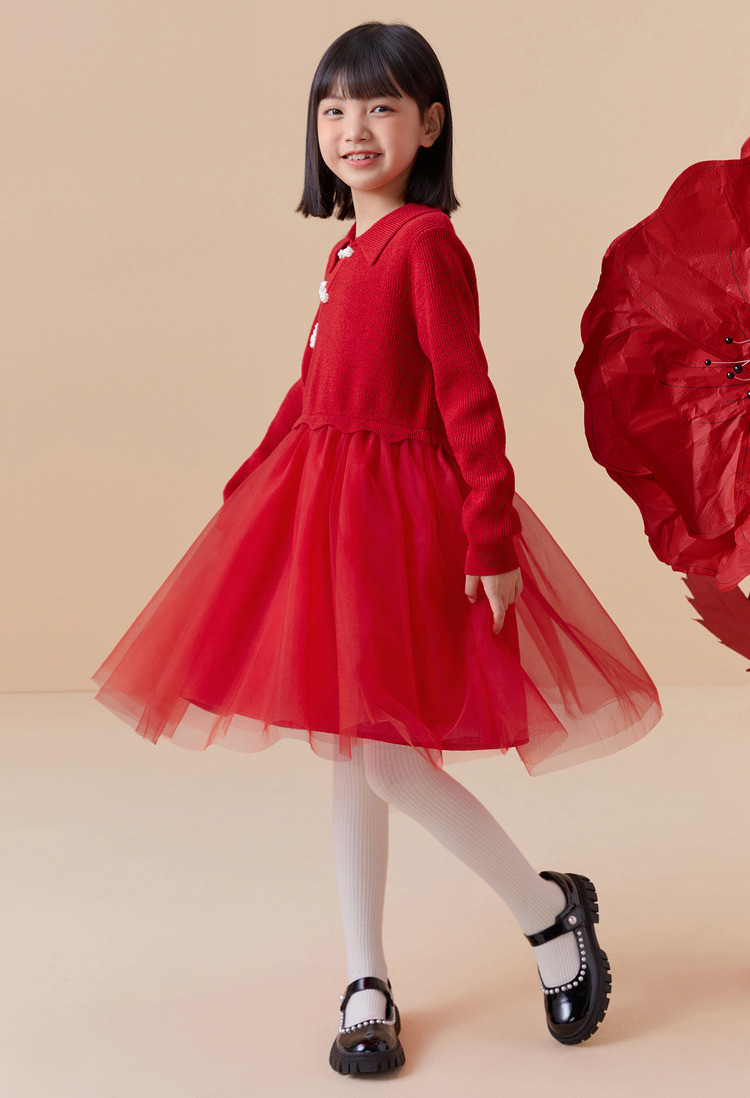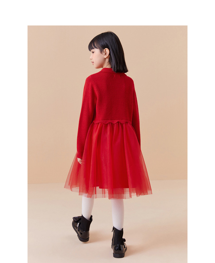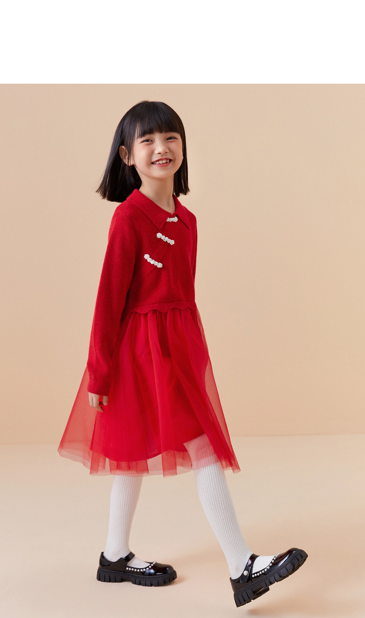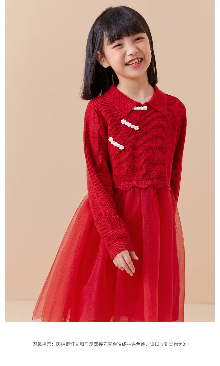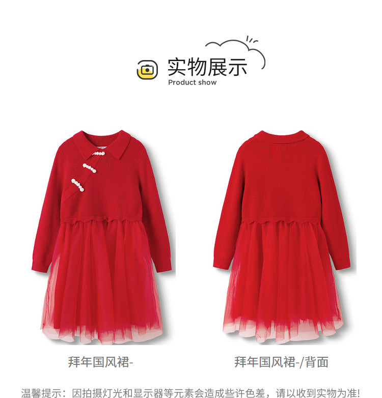 商品名称:新中式国风裙子女童网纱连衣裙儿童春秋款大童红色裙子精致小盘扣 856901
