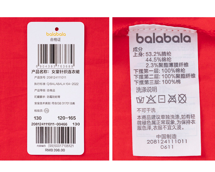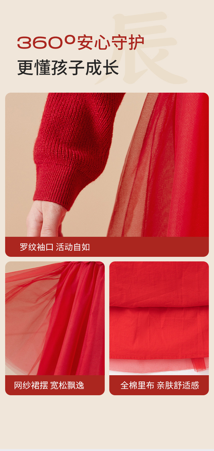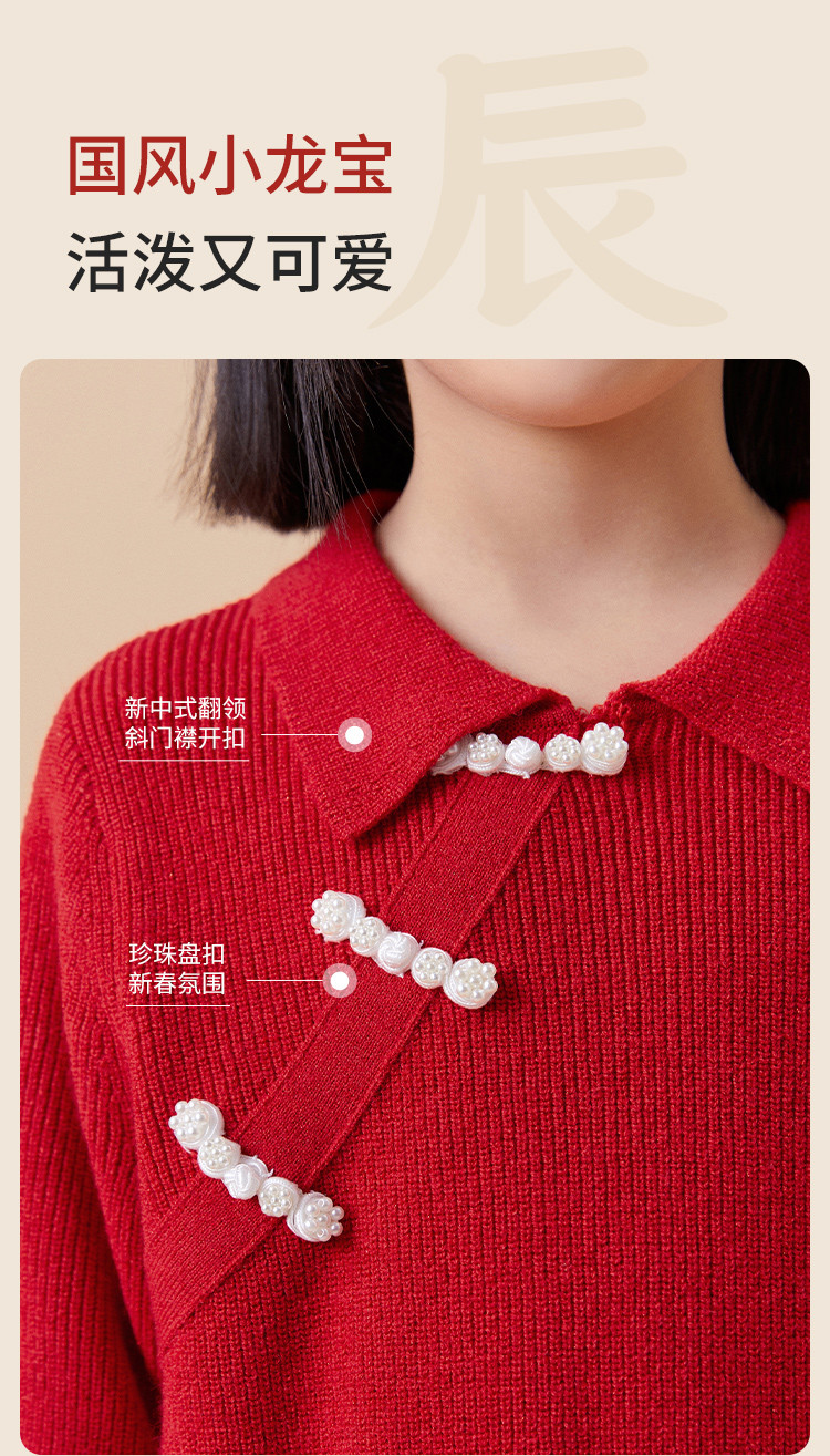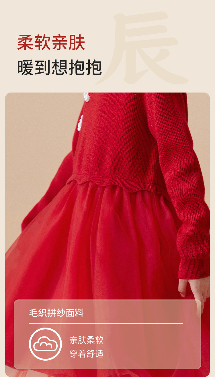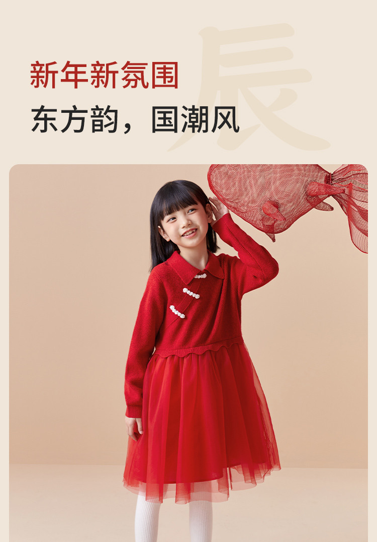 商品名称:新中式国风裙子女童网纱连衣裙儿童春秋款大童红色裙子精致小盘扣 856901