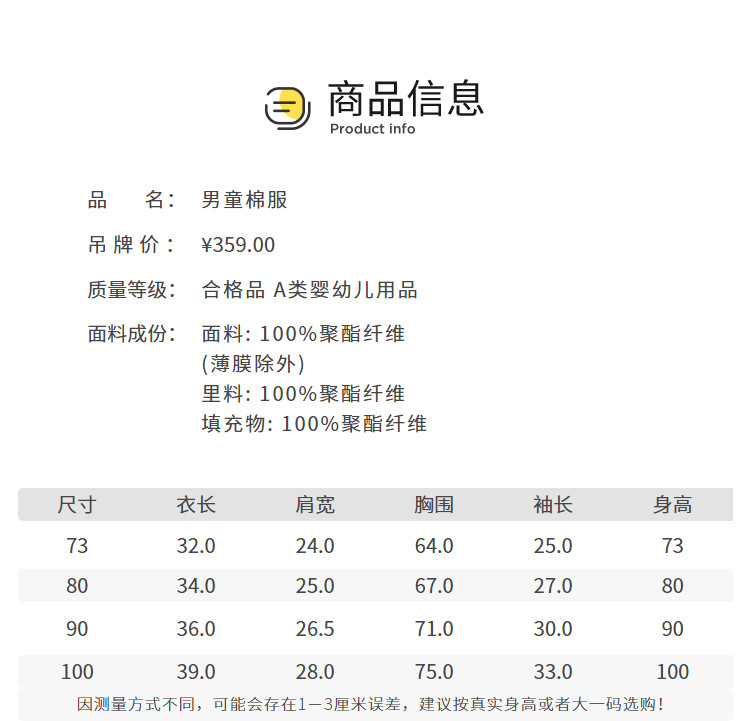 商品名称:男童棉服宝宝春秋棉衣儿童棉袄婴儿衣服外套潮国潮 702661