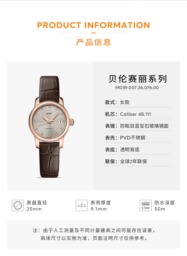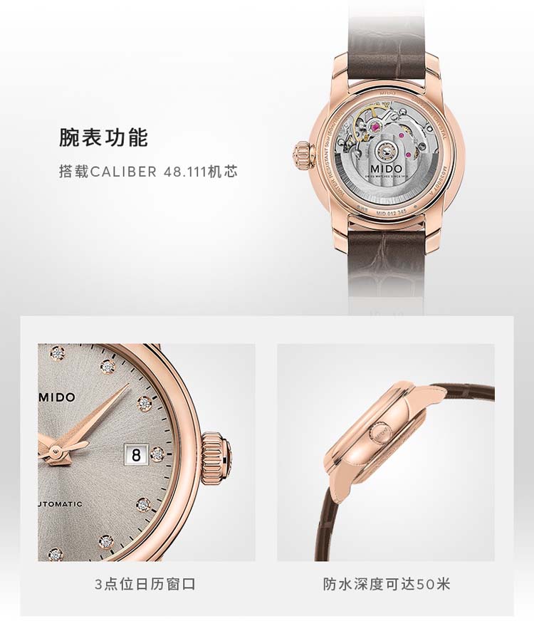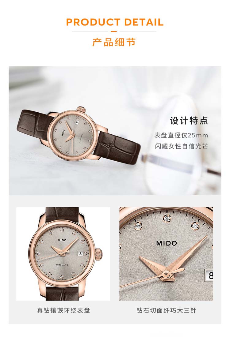 商品名称:MIDO美度 贝伦赛丽系列迷你小表盘机械女士腕表 (不支持无理由退换货)