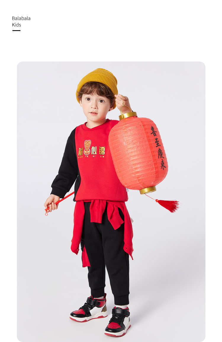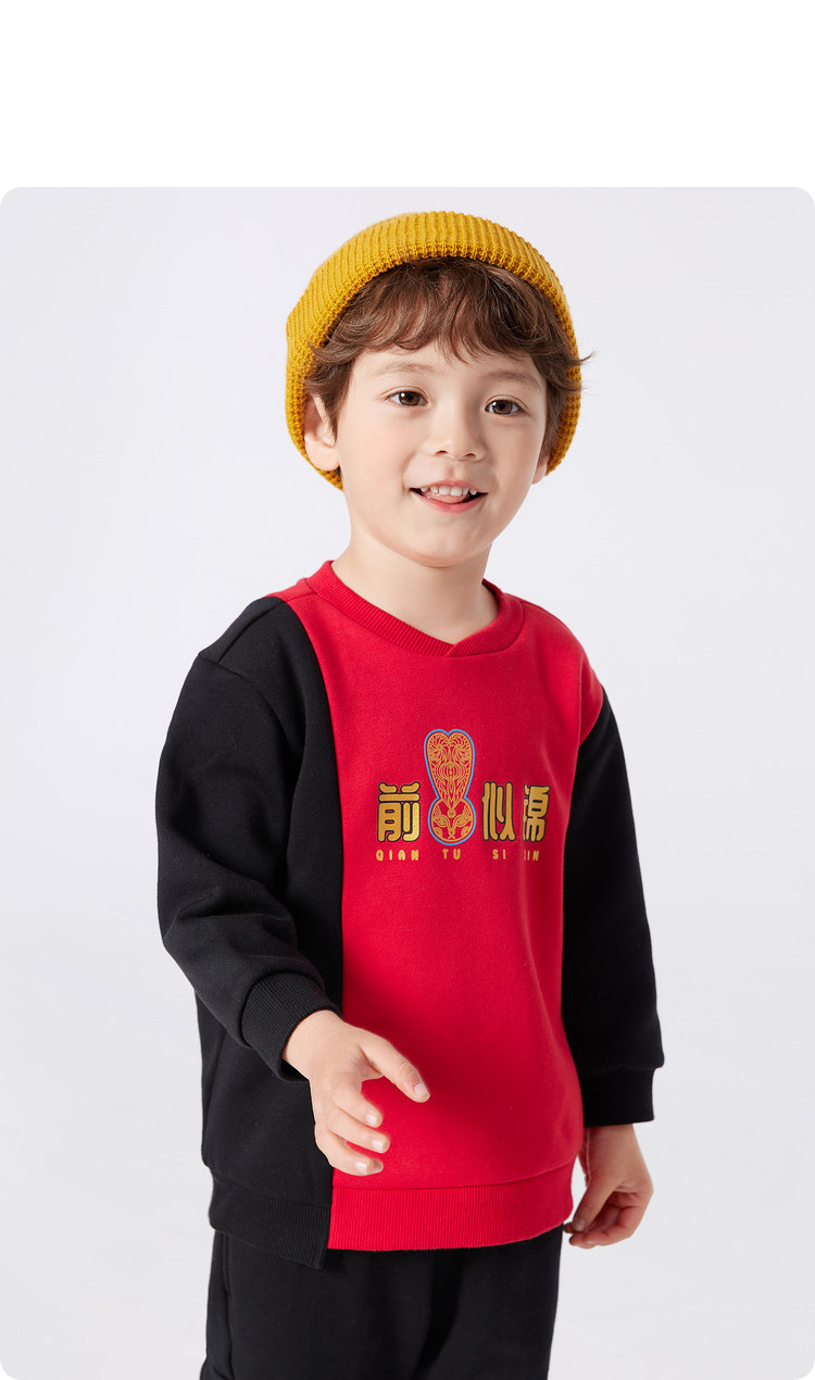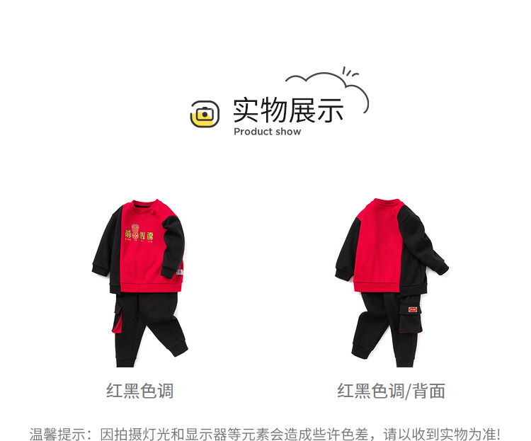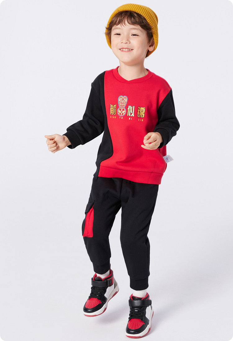 商品名称:国风瑞意图案印花设计童装男童套装儿童小童春秋装两件套撞色时髦 579781