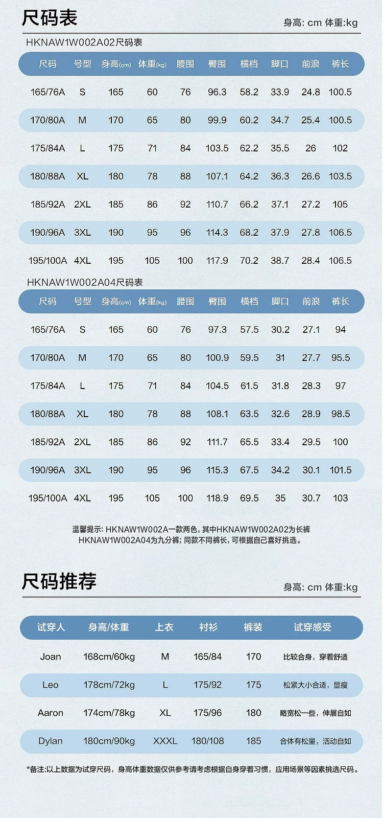 | 尺码 | 裤脚围(cm) | 腰围(cm) | 裤长(cm) | 前浪(cm) | 臀围(cm) | 号型 |