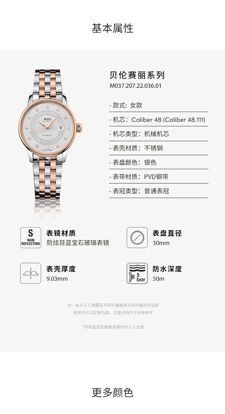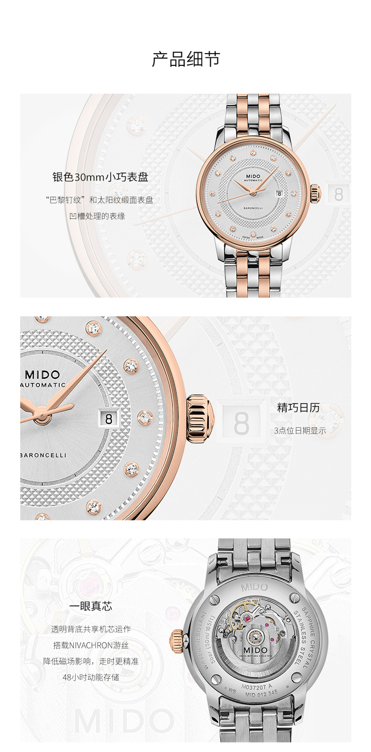 商品名称:MIDO美度 贝伦赛丽系列印记款机械女士腕表 (不支持无理由退换货)