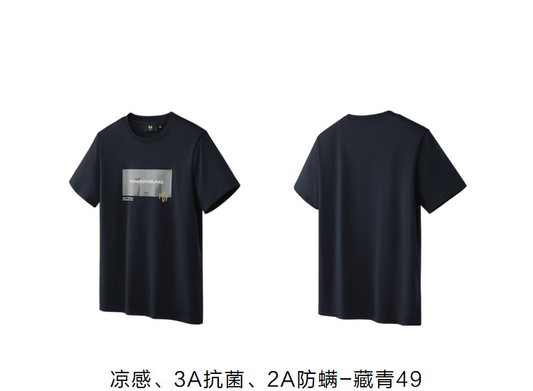 商品名称:【冰氧吧】夏季纯色新街潮抗菌防螨凉感圆领男士短袖T恤 460040