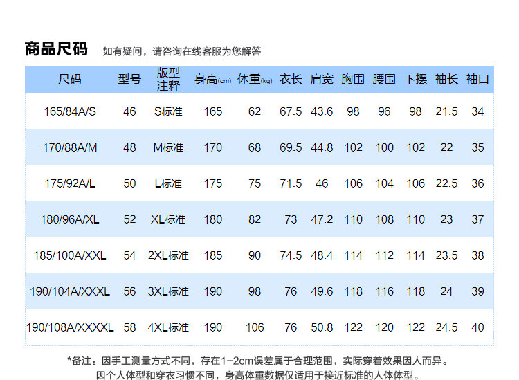 尺码 衣长(cm) 肩宽(cm) 腰围(cm) 袖长(cm) 胸围(cm) 下摆围(cm) 号型