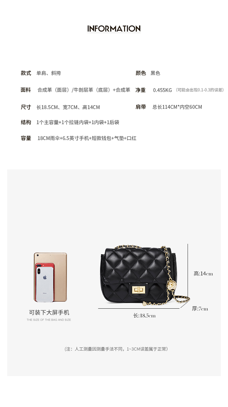 商品名称:纳兰杜包包女新款爆款斜挎包女链条今年流行百搭女包610110753