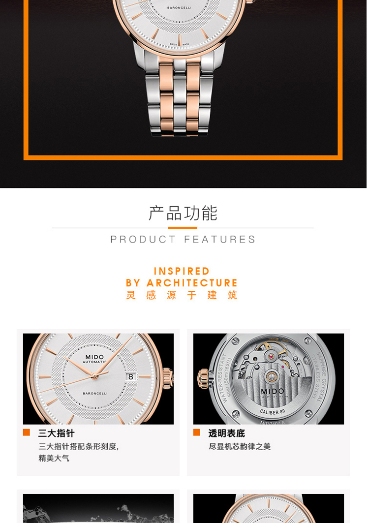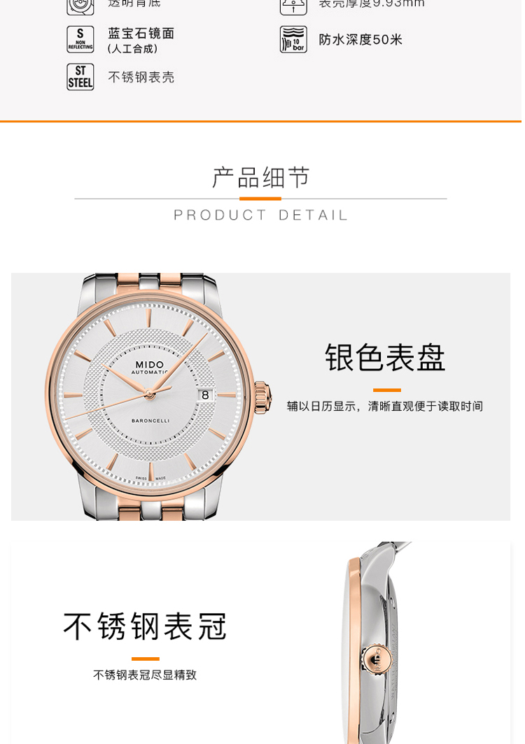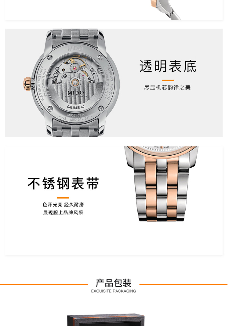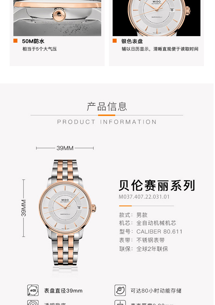 商品名称:MIDO美度 贝伦赛丽系列印记款机械男士腕表 (不支持无理由退换货)