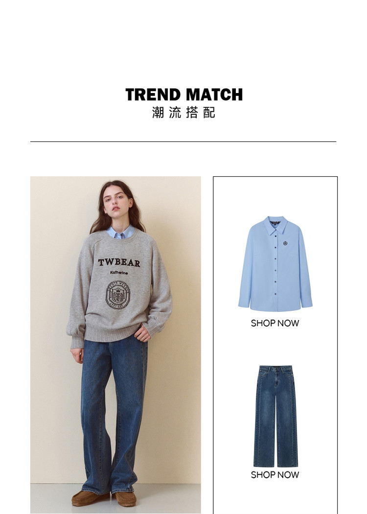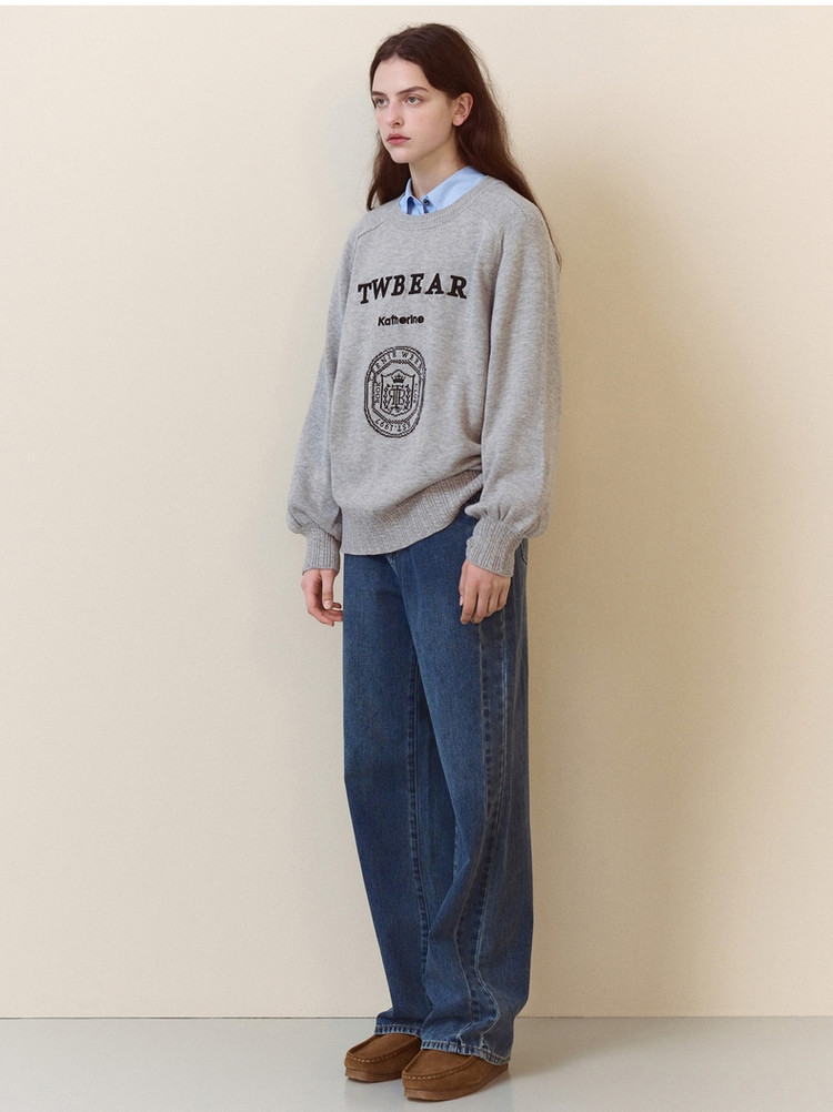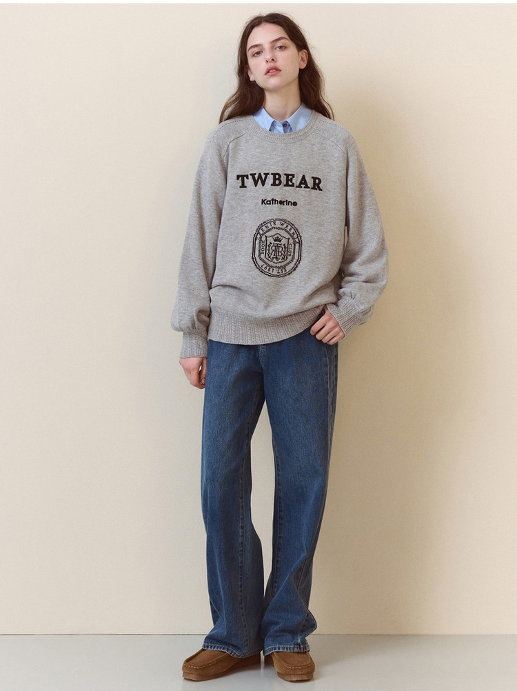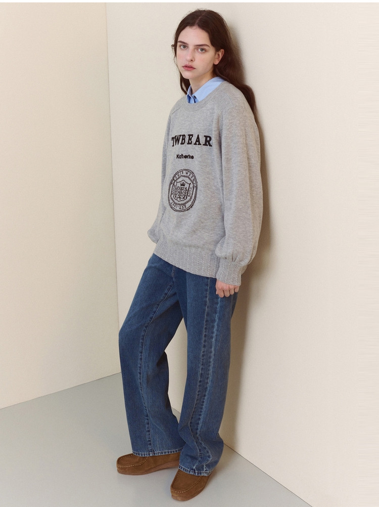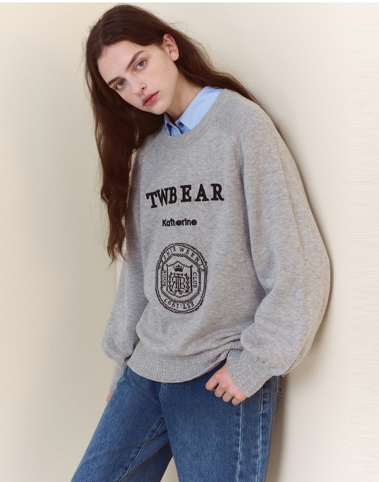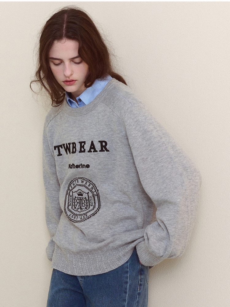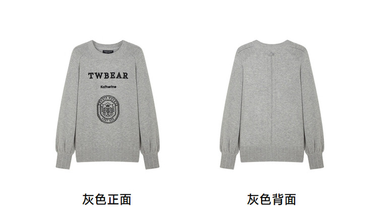 商品名称:小熊春秋款格雷系简约提花圆领套头毛衣韩版上衣女装 376769