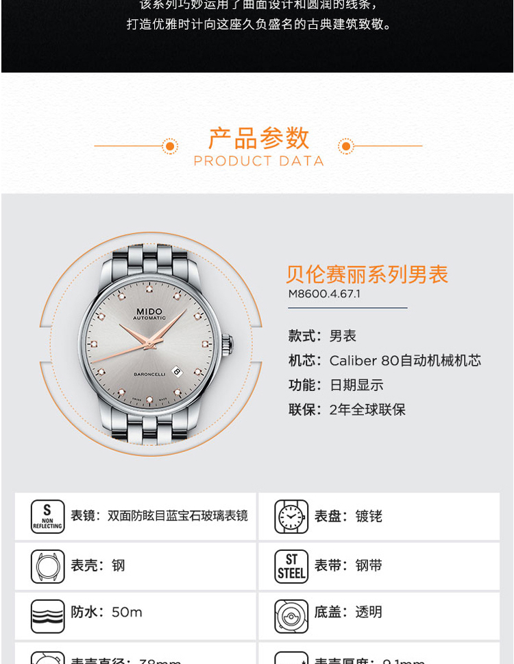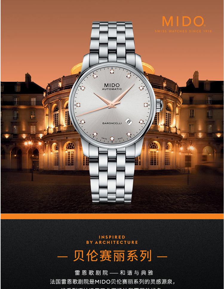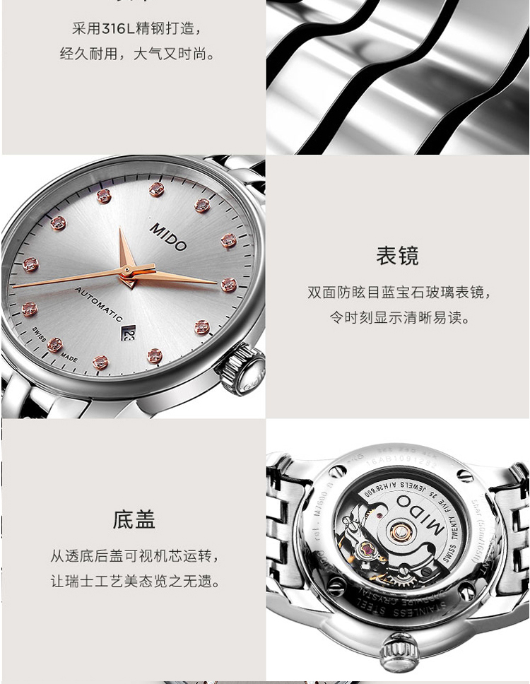 商品名称:MIDO美度 贝伦赛丽系列自动机械女款钻表 (不支持无理由退换货)
